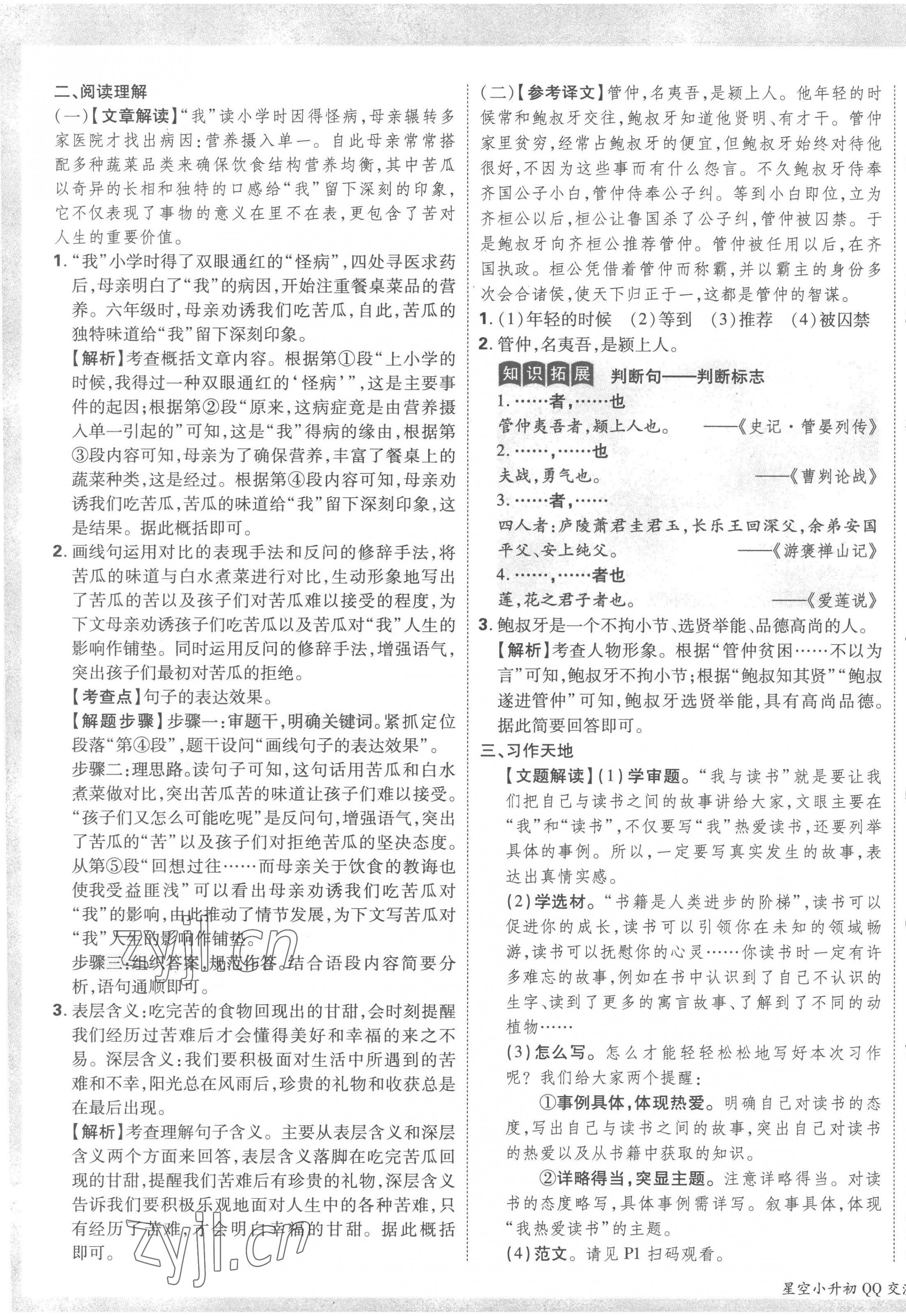 注:目前有些书本章节名称可能整理的还不是很完善,但都是按照顺序排列的,请同学们按照顺序仔细查找。练习册 2023年重点中学招生真题超详解六年级语文 答案主要是用来给同学们做完题方便对答案用的,请勿直接抄袭。