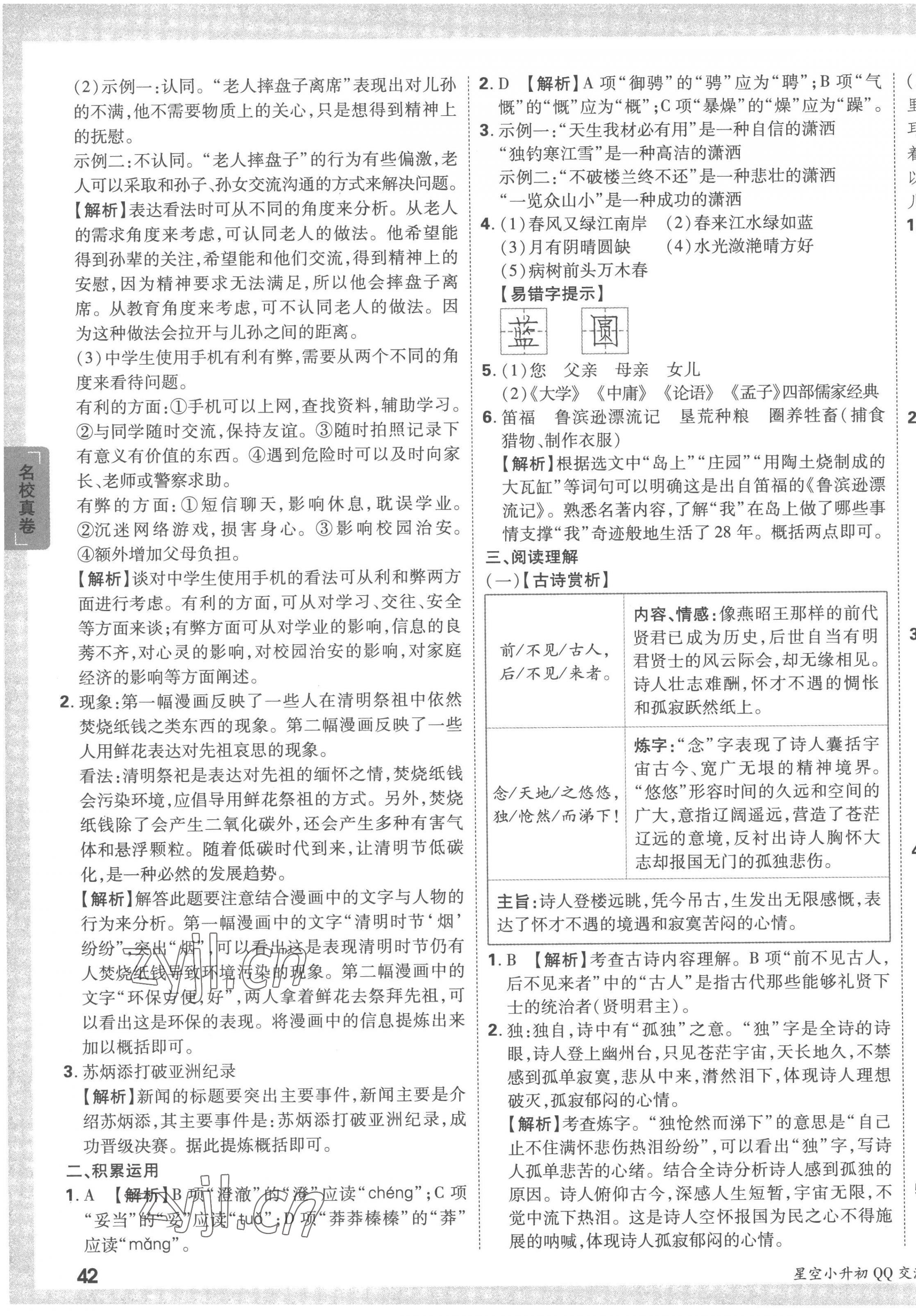 注:目前有些书本章节名称可能整理的还不是很完善,但都是按照顺序排列的,请同学们按照顺序仔细查找。练习册 2023年重点中学招生真题超详解六年级语文 答案主要是用来给同学们做完题方便对答案用的,请勿直接抄袭。