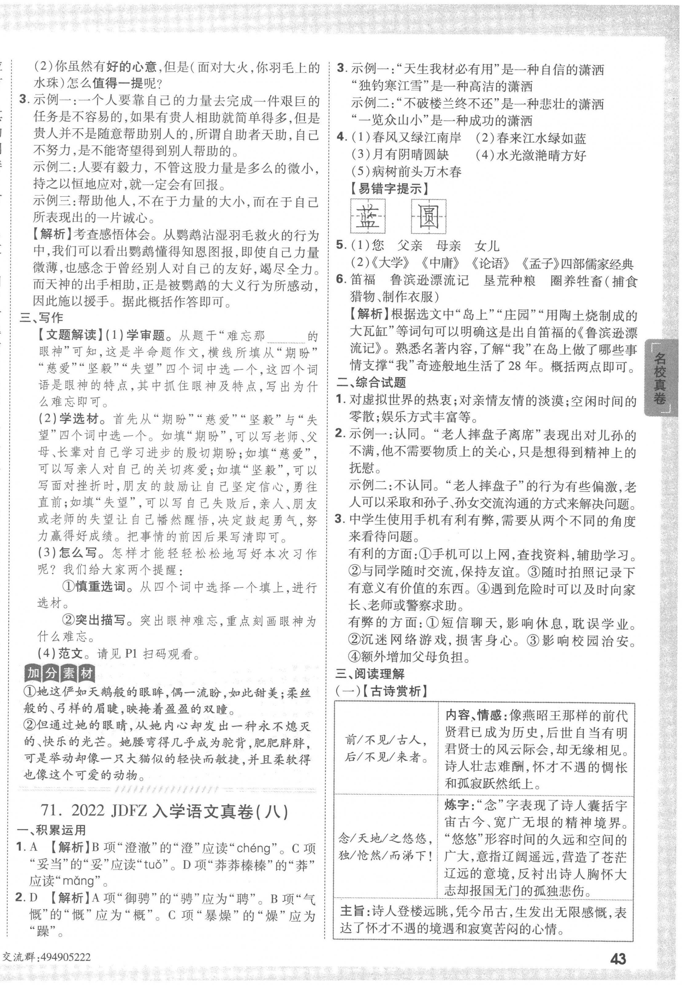 注:目前有些书本章节名称可能整理的还不是很完善,但都是按照顺序排列的,请同学们按照顺序仔细查找。练习册 2023年重点中学招生真题超详解六年级语文 答案主要是用来给同学们做完题方便对答案用的,请勿直接抄袭。