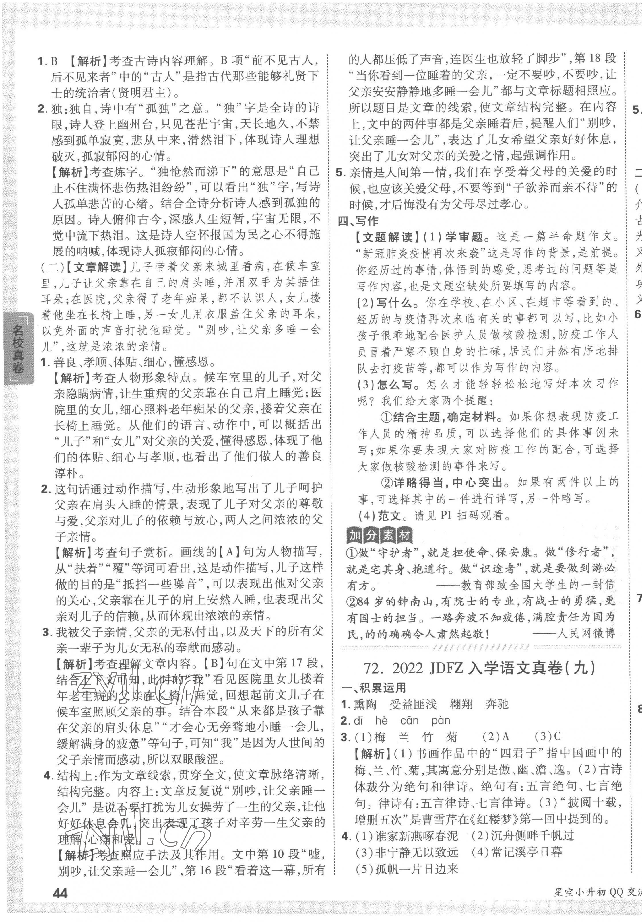 注:目前有些书本章节名称可能整理的还不是很完善,但都是按照顺序排列的,请同学们按照顺序仔细查找。练习册 2023年重点中学招生真题超详解六年级语文 答案主要是用来给同学们做完题方便对答案用的,请勿直接抄袭。