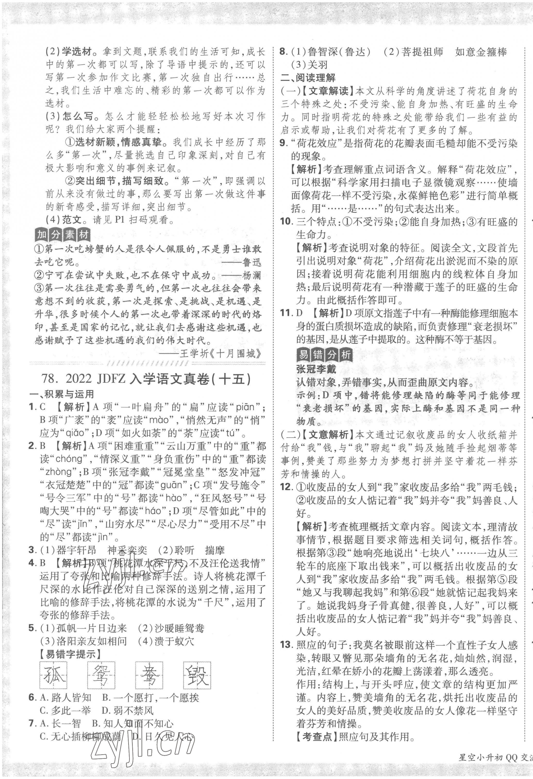注:目前有些书本章节名称可能整理的还不是很完善,但都是按照顺序排列的,请同学们按照顺序仔细查找。练习册 2023年重点中学招生真题超详解六年级语文 答案主要是用来给同学们做完题方便对答案用的,请勿直接抄袭。