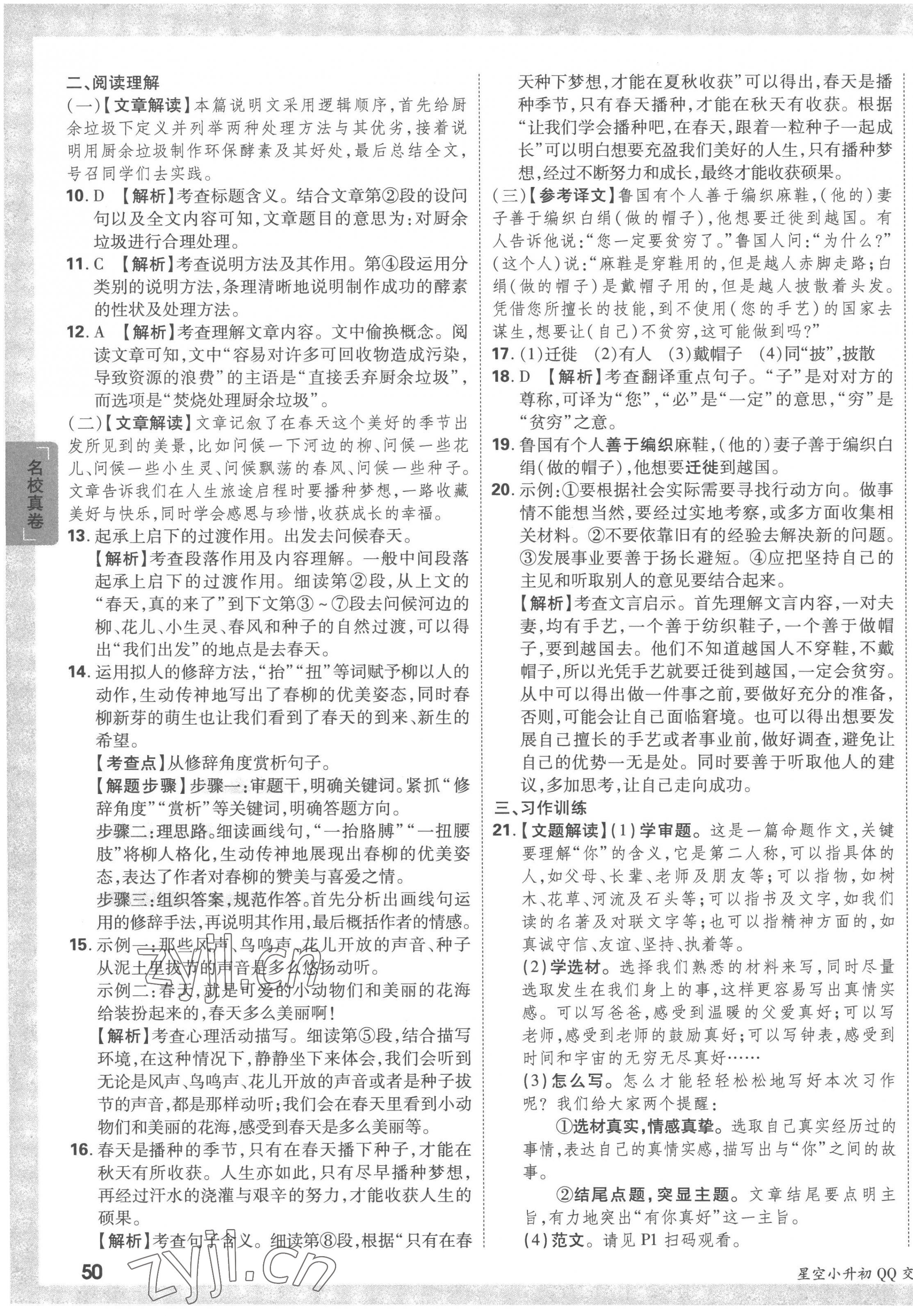 2023年重点中学招生真题超详解六年级语文