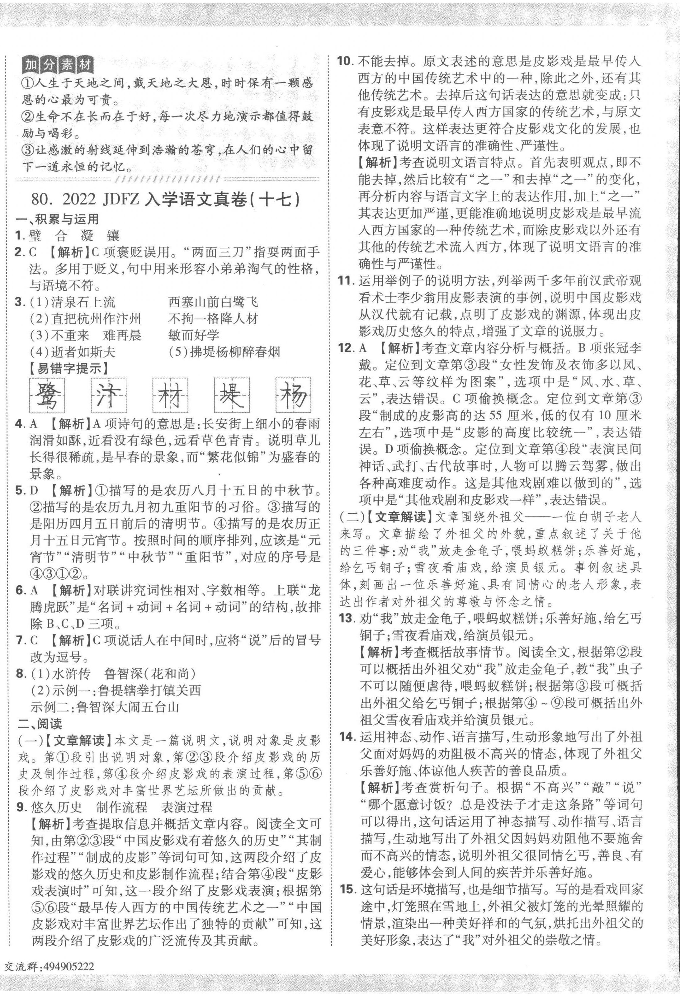 注:目前有些书本章节名称可能整理的还不是很完善,但都是按照顺序排列的,请同学们按照顺序仔细查找。练习册 2023年重点中学招生真题超详解六年级语文 答案主要是用来给同学们做完题方便对答案用的,请勿直接抄袭。
