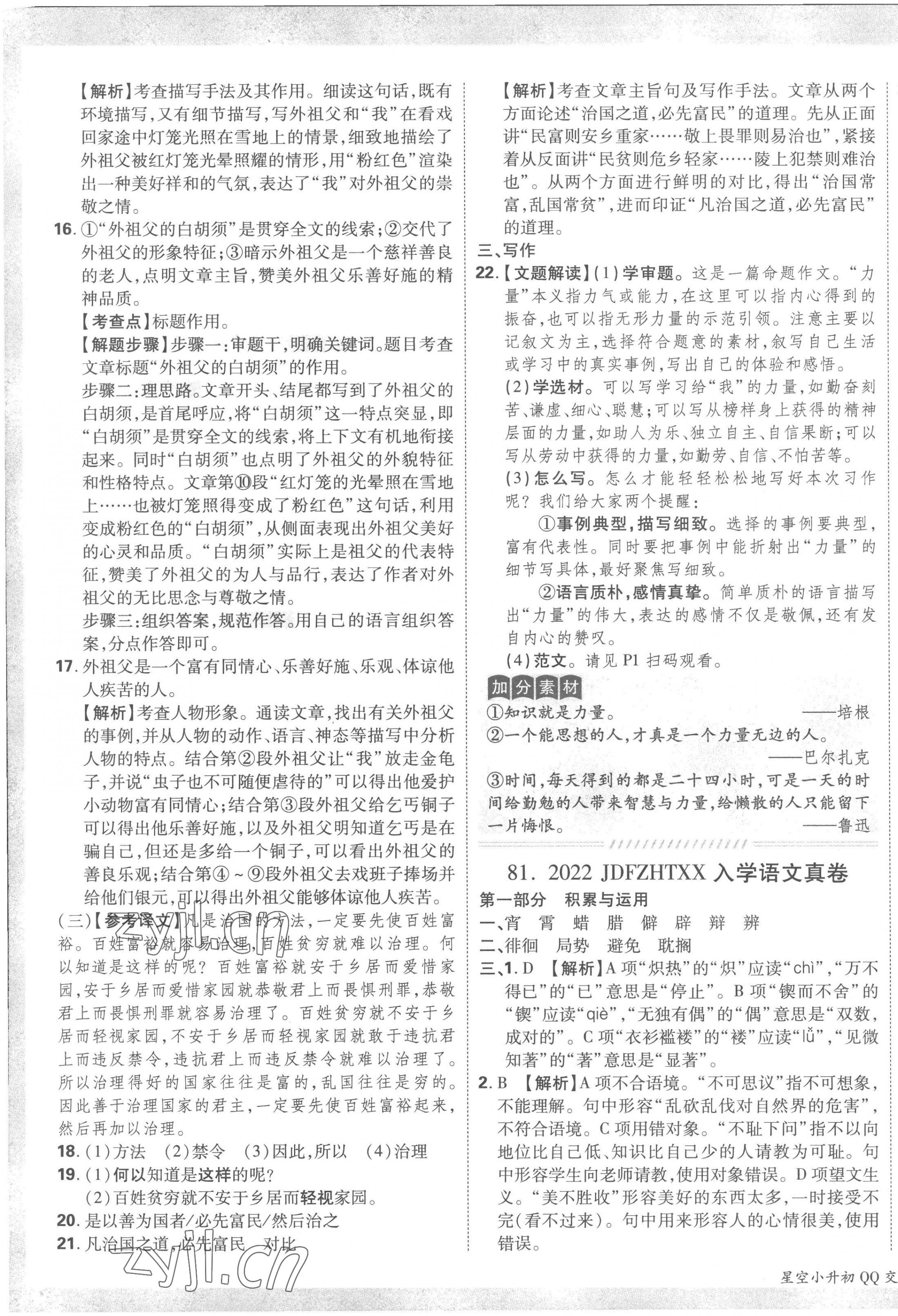 注:目前有些书本章节名称可能整理的还不是很完善,但都是按照顺序排列的,请同学们按照顺序仔细查找。练习册 2023年重点中学招生真题超详解六年级语文 答案主要是用来给同学们做完题方便对答案用的,请勿直接抄袭。