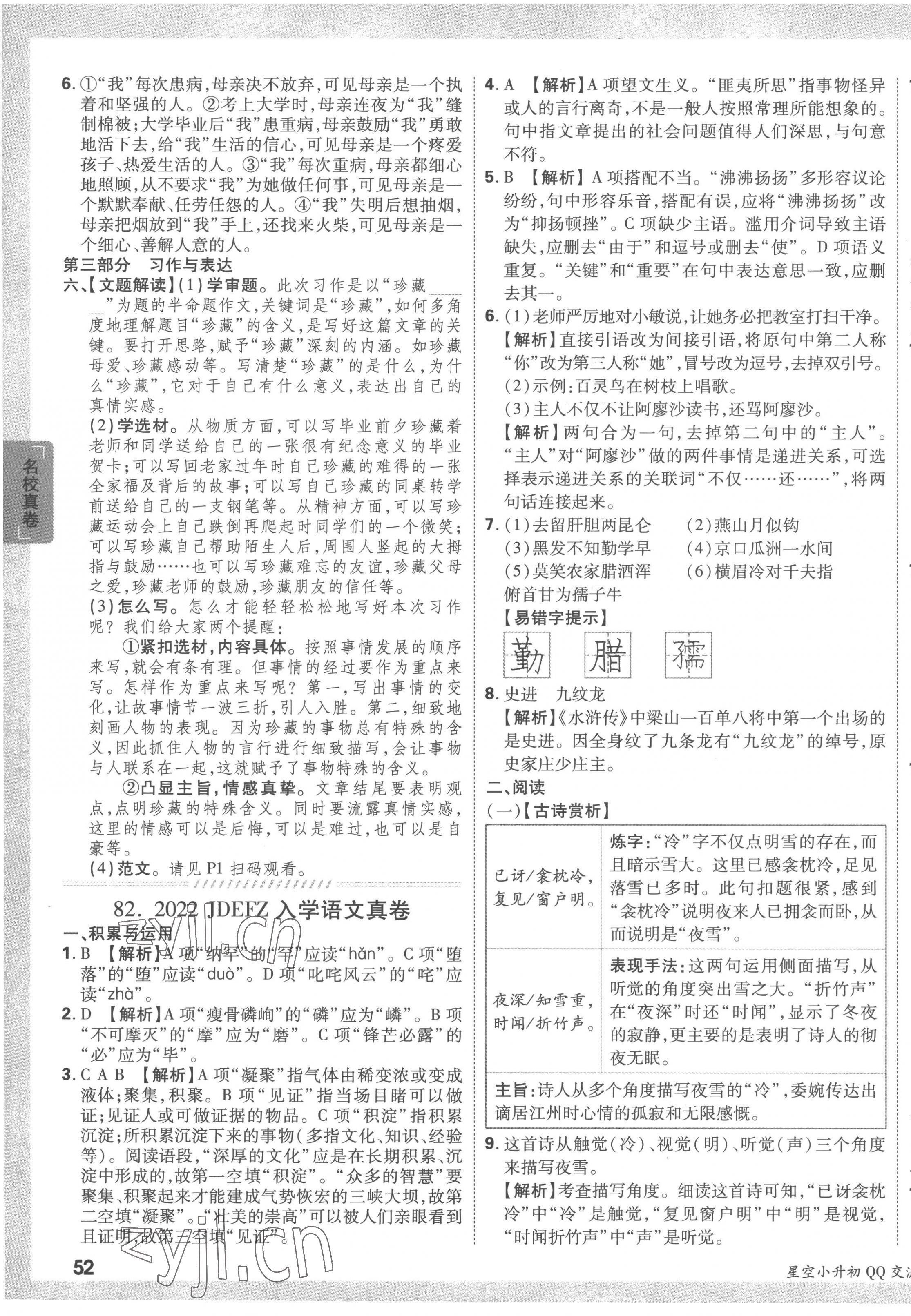 2023年重点中学招生真题超详解六年级语文