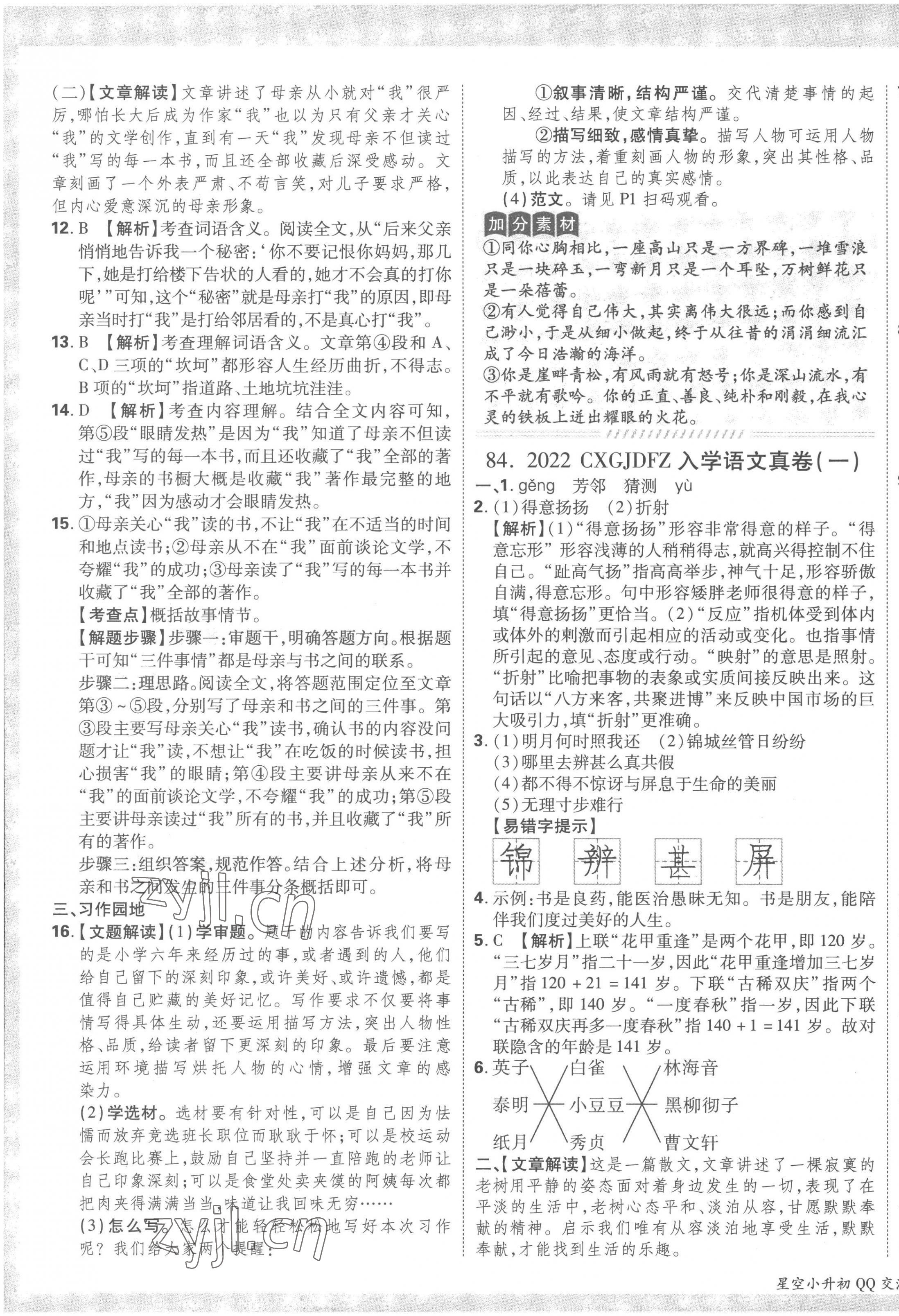注:目前有些书本章节名称可能整理的还不是很完善,但都是按照顺序排列的,请同学们按照顺序仔细查找。练习册 2023年重点中学招生真题超详解六年级语文 答案主要是用来给同学们做完题方便对答案用的,请勿直接抄袭。