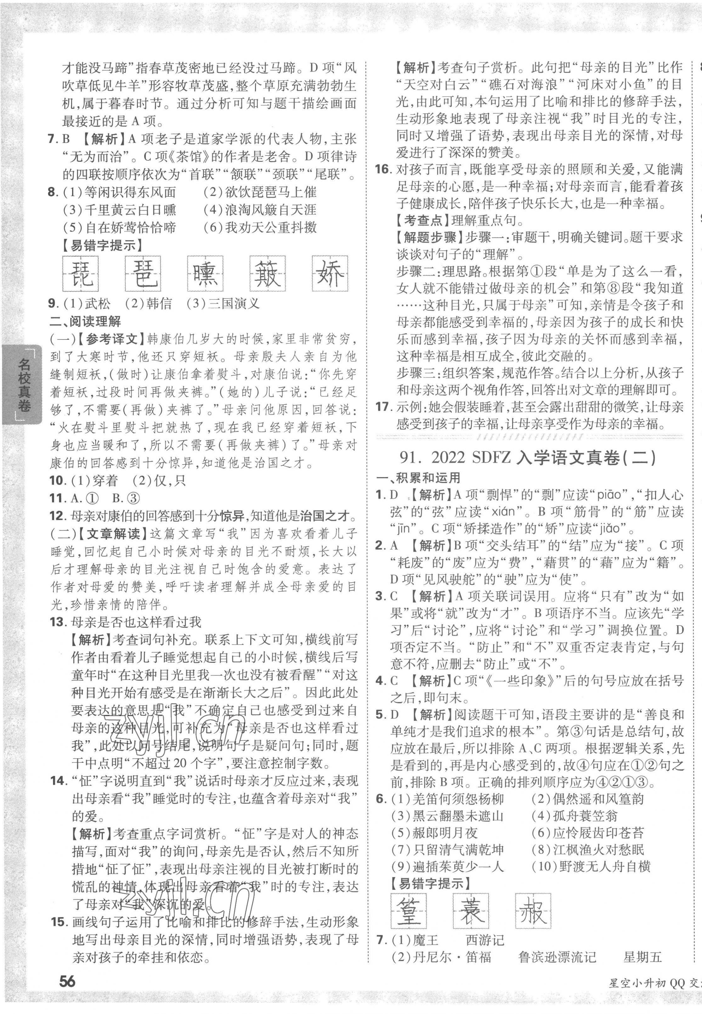 2023年重点中学招生真题超详解六年级语文