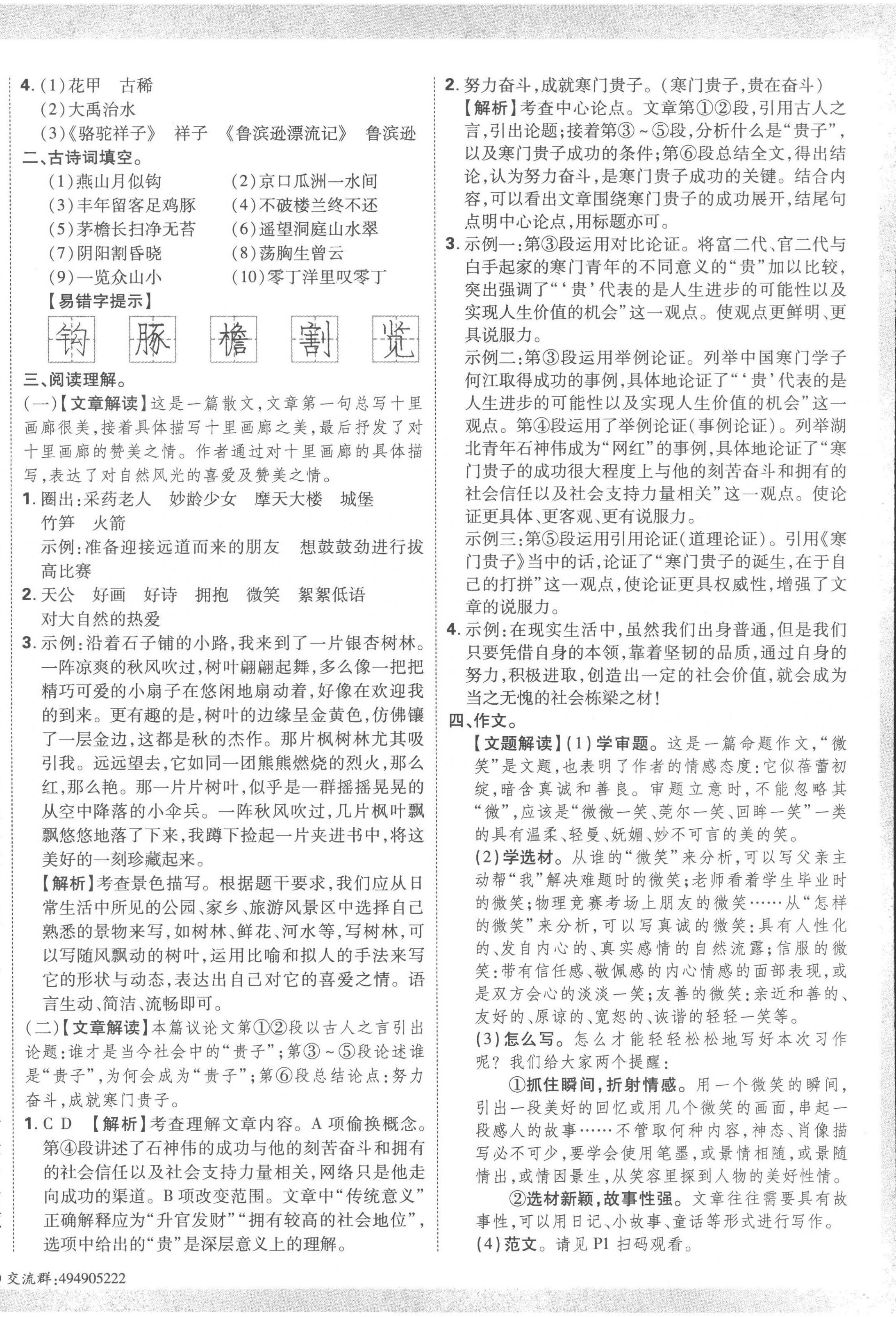 注:目前有些书本章节名称可能整理的还不是很完善,但都是按照顺序排列的,请同学们按照顺序仔细查找。练习册 2023年重点中学招生真题超详解六年级语文 答案主要是用来给同学们做完题方便对答案用的,请勿直接抄袭。