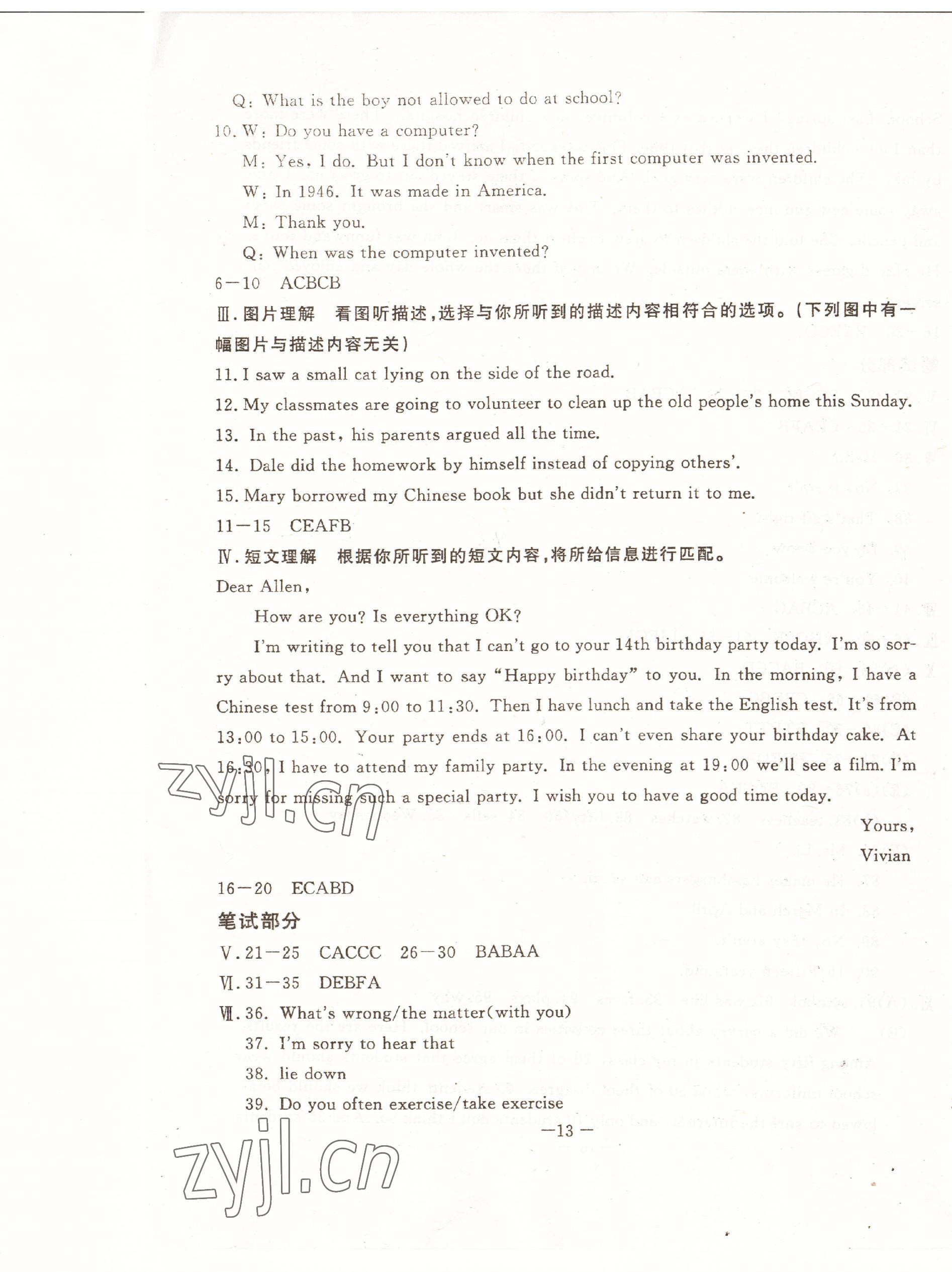 注:目前有些书本章节名称可能整理的还不是很完善,但都是按照顺序排列的,请同学们按照顺序仔细查找。练习册 2023年文曲星中考全真模拟英语人教版吉林专版 答案主要是用来给同学们做完题方便对答案用的,请勿直接抄袭。