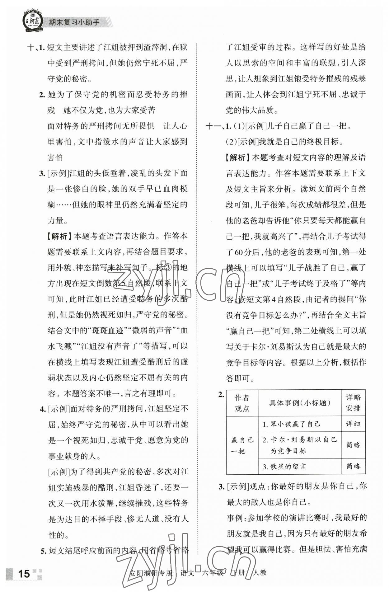 注:目前有些书本章节名称可能整理的还不是很完善,但都是按照顺序排列的,请同学们按照顺序仔细查找。练习册 2023年王朝霞期末真题精编六年级语文下册人教版安濮专版 答案主要是用来给同学们做完题方便对答案用的,请勿直接抄袭。