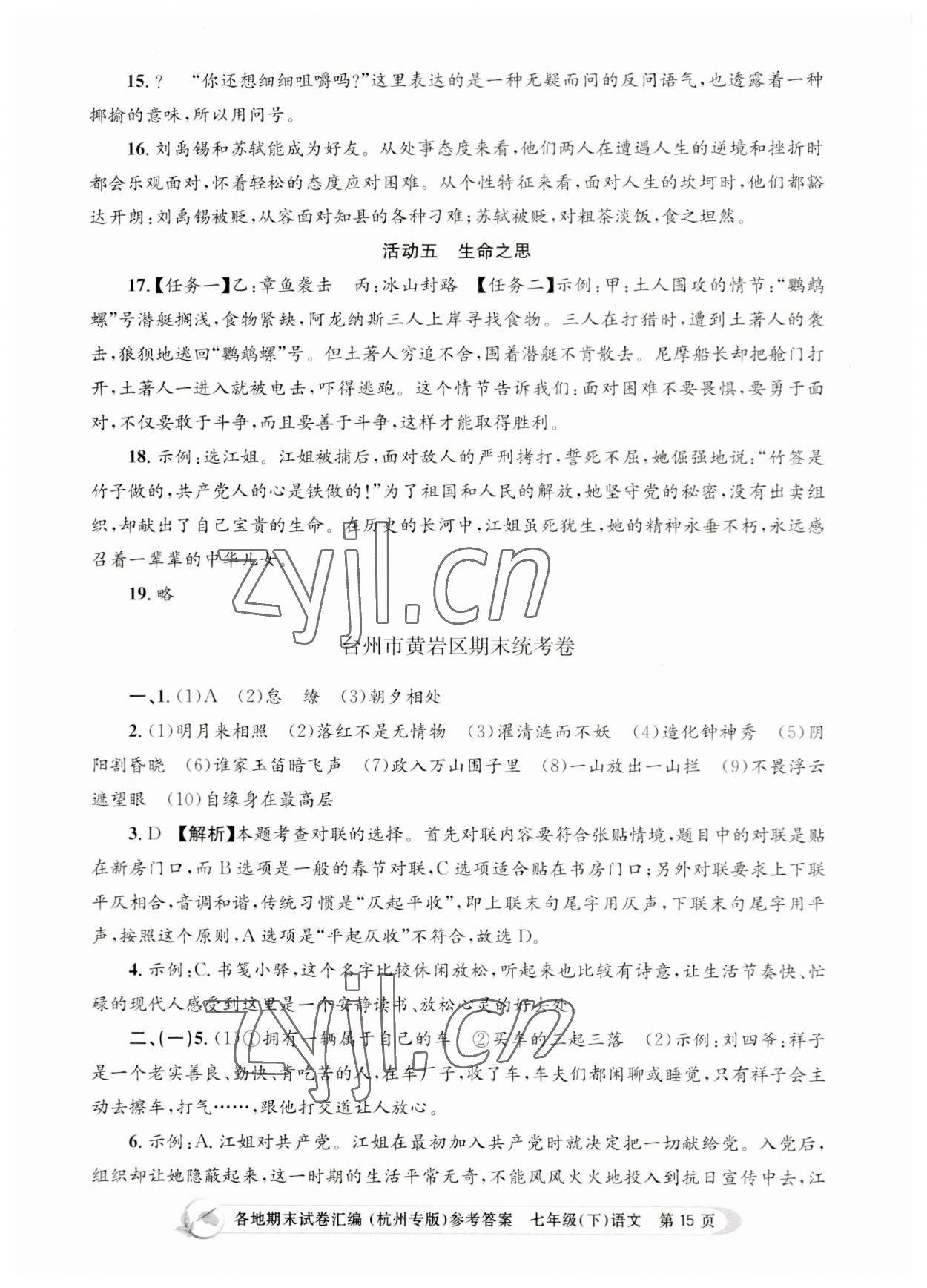 注:目前有些书本章节名称可能整理的还不是很完善,但都是按照顺序排列的,请同学们按照顺序仔细查找。练习册 2023年孟建平各地期末试卷汇编七年级语文下册人教版杭州专版 答案主要是用来给同学们做完题方便对答案用的,请勿直接抄袭。