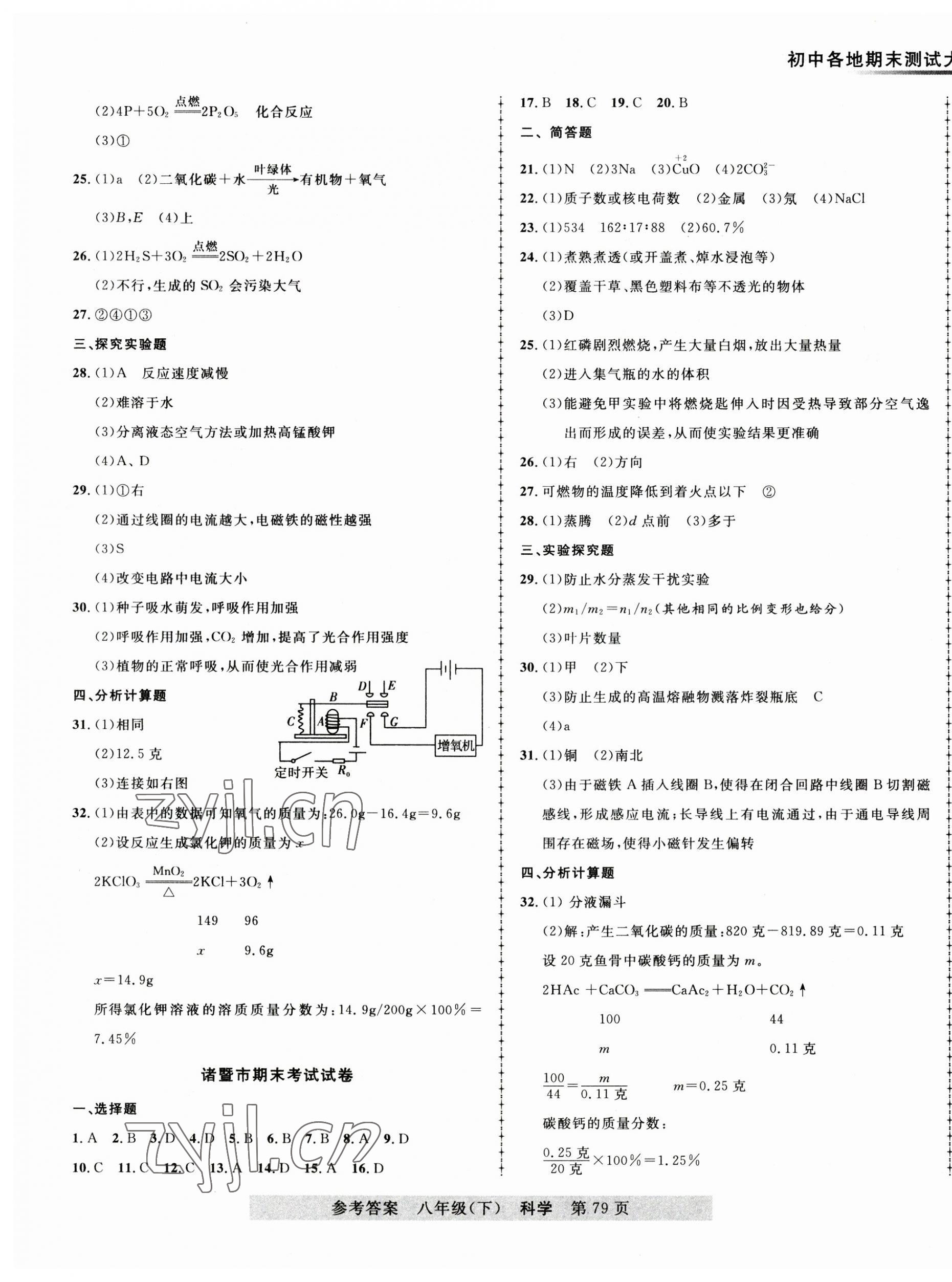 注:目前有些书本章节名称可能整理的还不是很完善,但都是按照顺序排列的,请同学们按照顺序仔细查找。练习册 2023年初中各地期末测试大考卷八年级科学下册浙教版浙江专版 答案主要是用来给同学们做完题方便对答案用的,请勿直接抄袭。