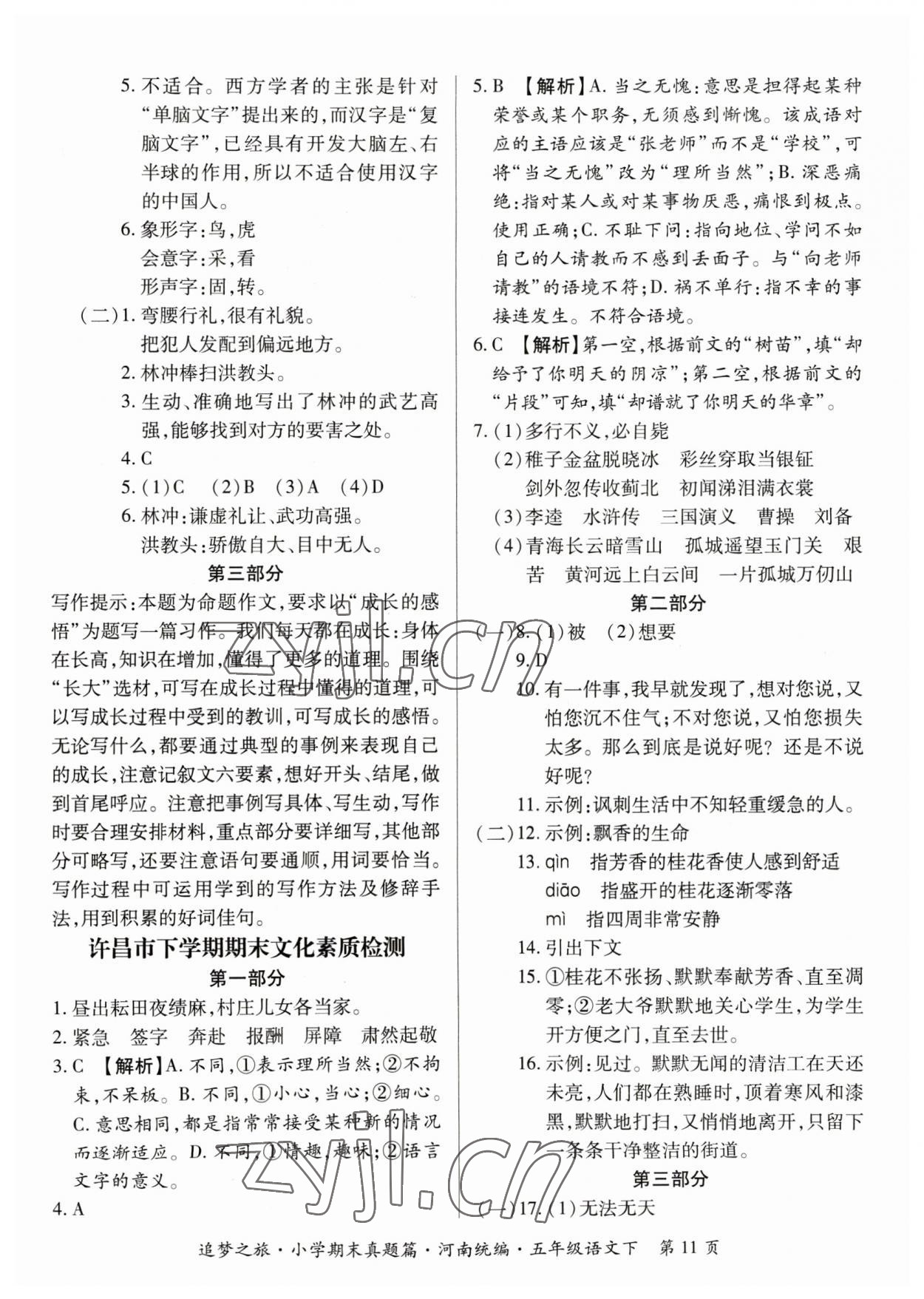 《2023年追梦之旅小学期末真题篇五年级语文下册人教版河南专版》