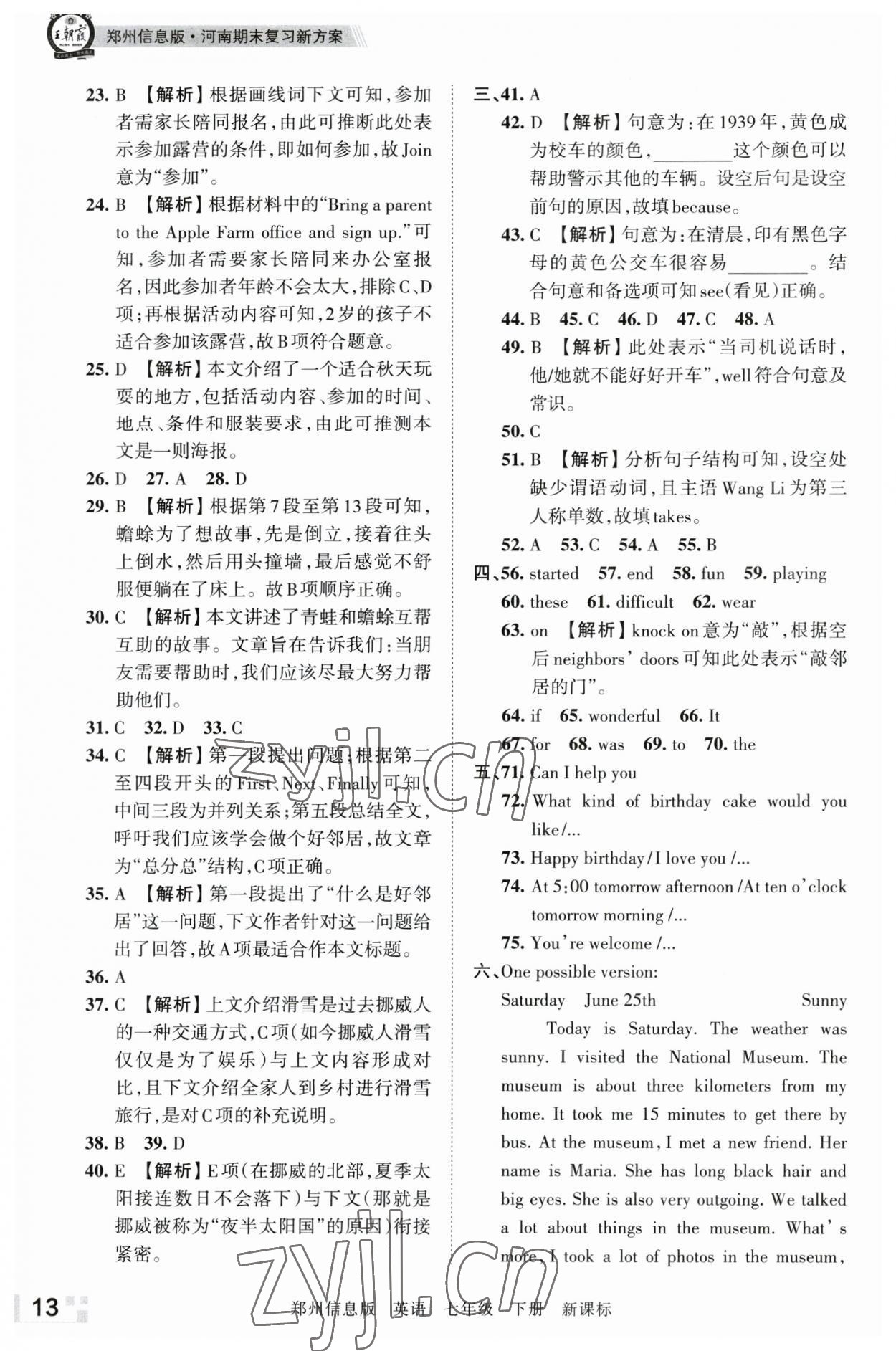 《2023年王朝霞期末真题精编七年级英语下册新课标版郑州专版》