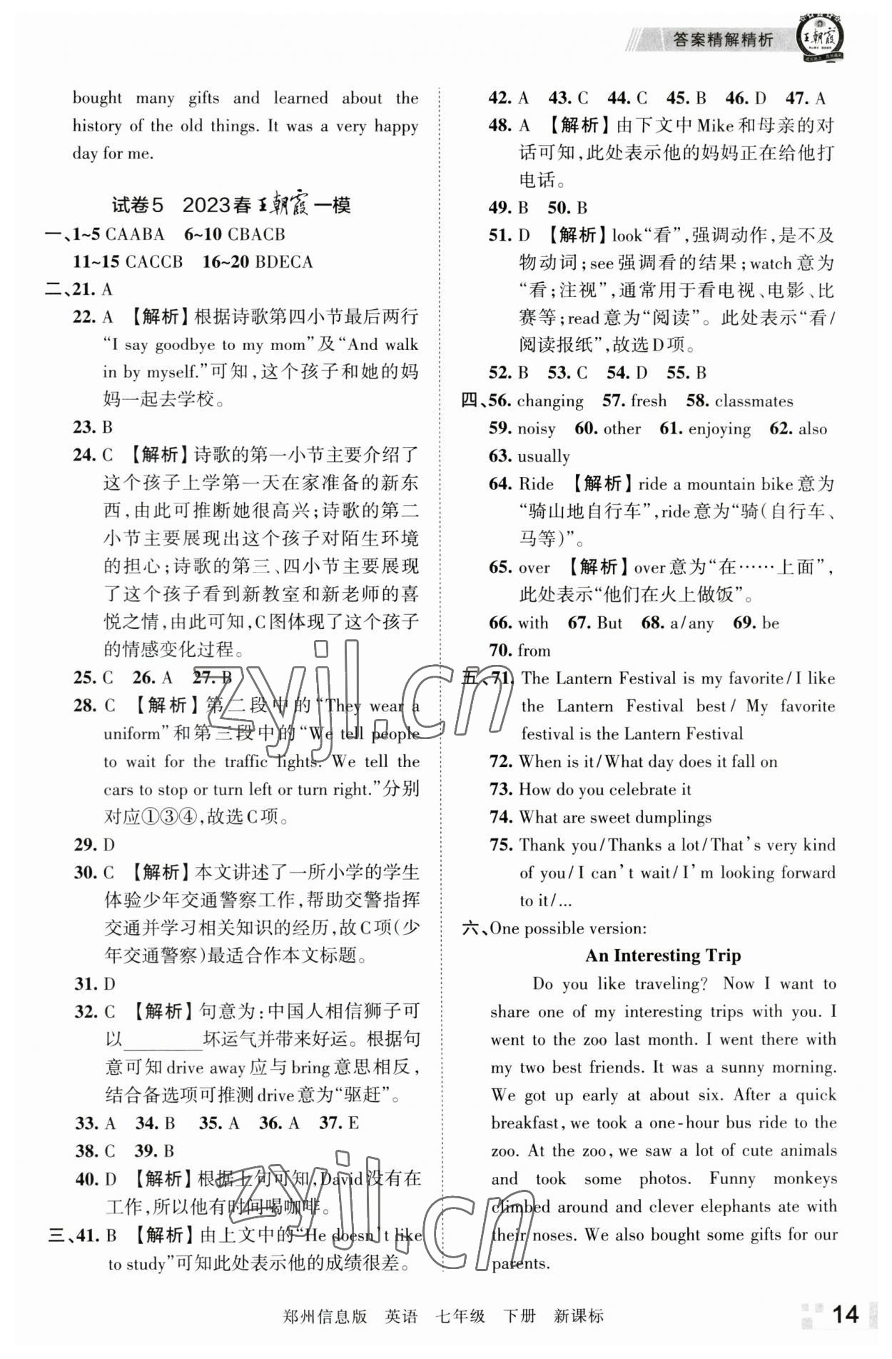 注:目前有些书本章节名称可能整理的还不是很完善,但都是按照顺序排列的,请同学们按照顺序仔细查找。练习册 2023年王朝霞期末真题精编七年级英语下册新课标版郑州专版 答案主要是用来给同学们做完题方便对答案用的,请勿直接抄袭。