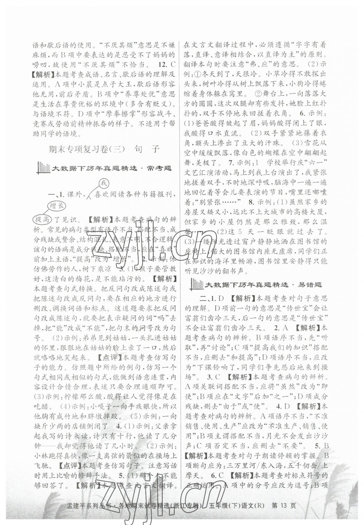 《2023年孟建平各地期末试卷精选五年级语文下册人教版台州专版》