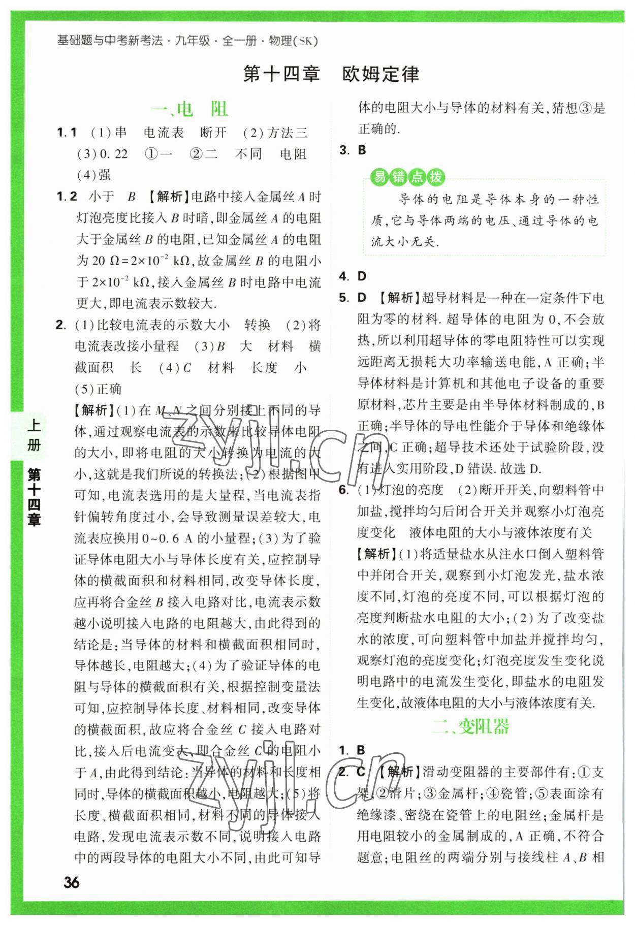 注:目前有些书本章节名称可能整理的还不是很完善,但都是按照顺序排列的,请同学们按照顺序仔细查找。练习册 2023年万唯中考基础题九年级物理全一册苏科版 答案主要是用来给同学们做完题方便对答案用的,请勿直接抄袭。