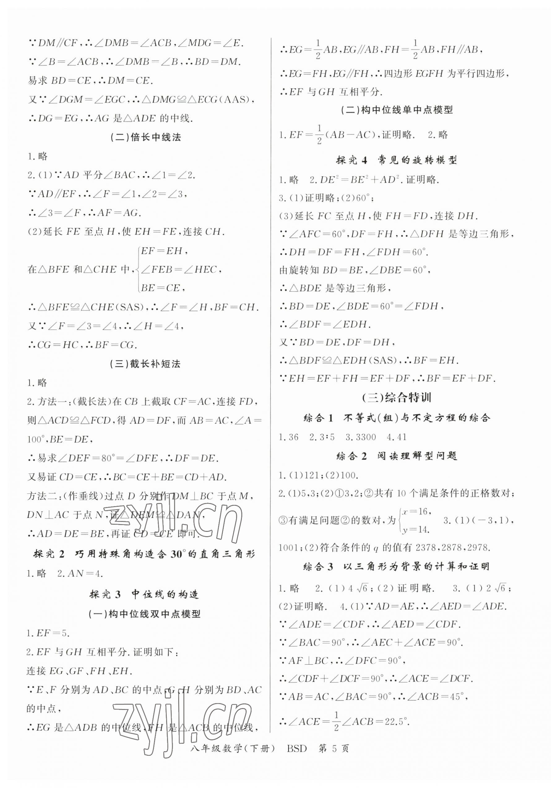 2023年智琅图书学期总动员八年级数学下册北师大版