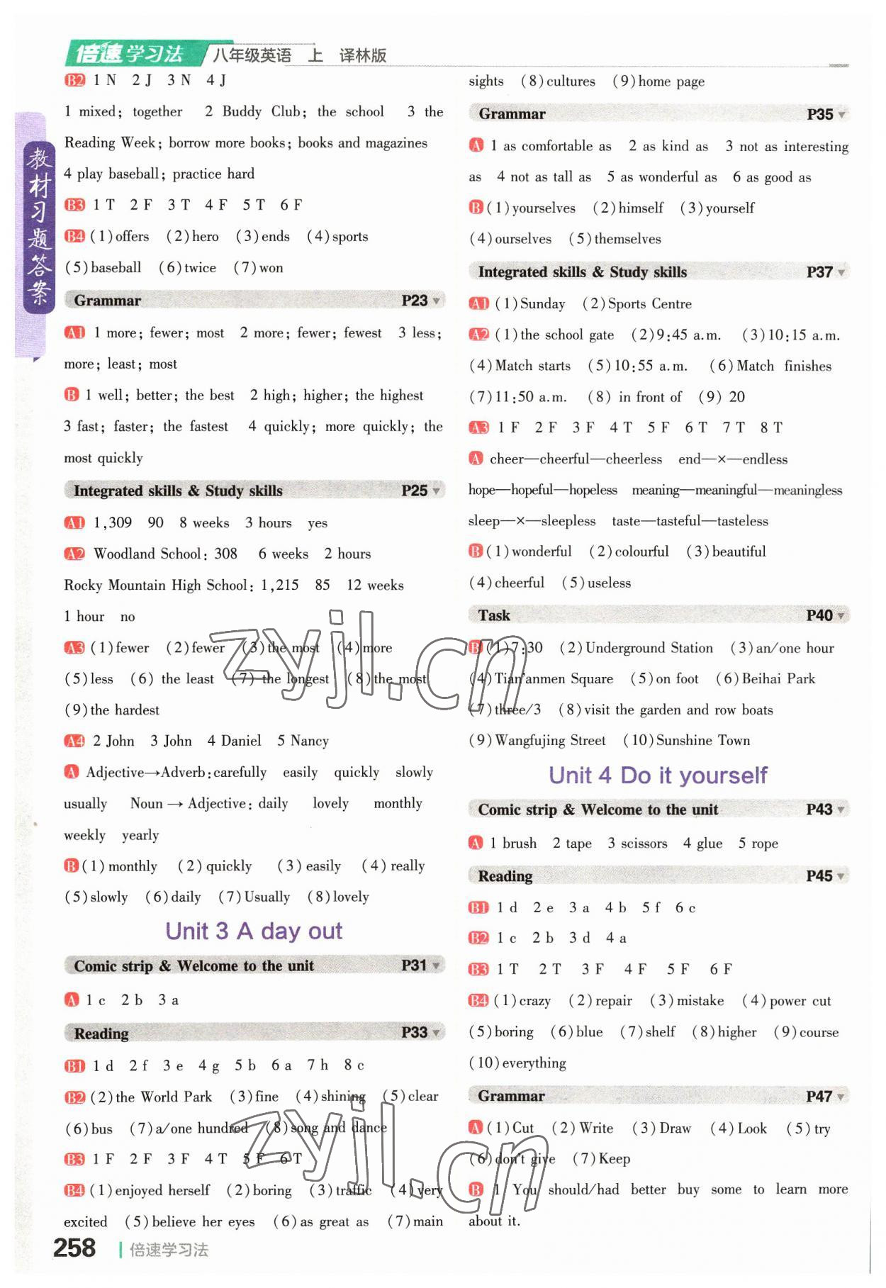 注:目前有些书本章节名称可能整理的还不是很完善,但都是按照顺序排列的,请同学们按照顺序仔细查找。练习册 2023年倍速学习法八年级英语上册译林版 答案主要是用来给同学们做完题方便对答案用的,请勿直接抄袭。