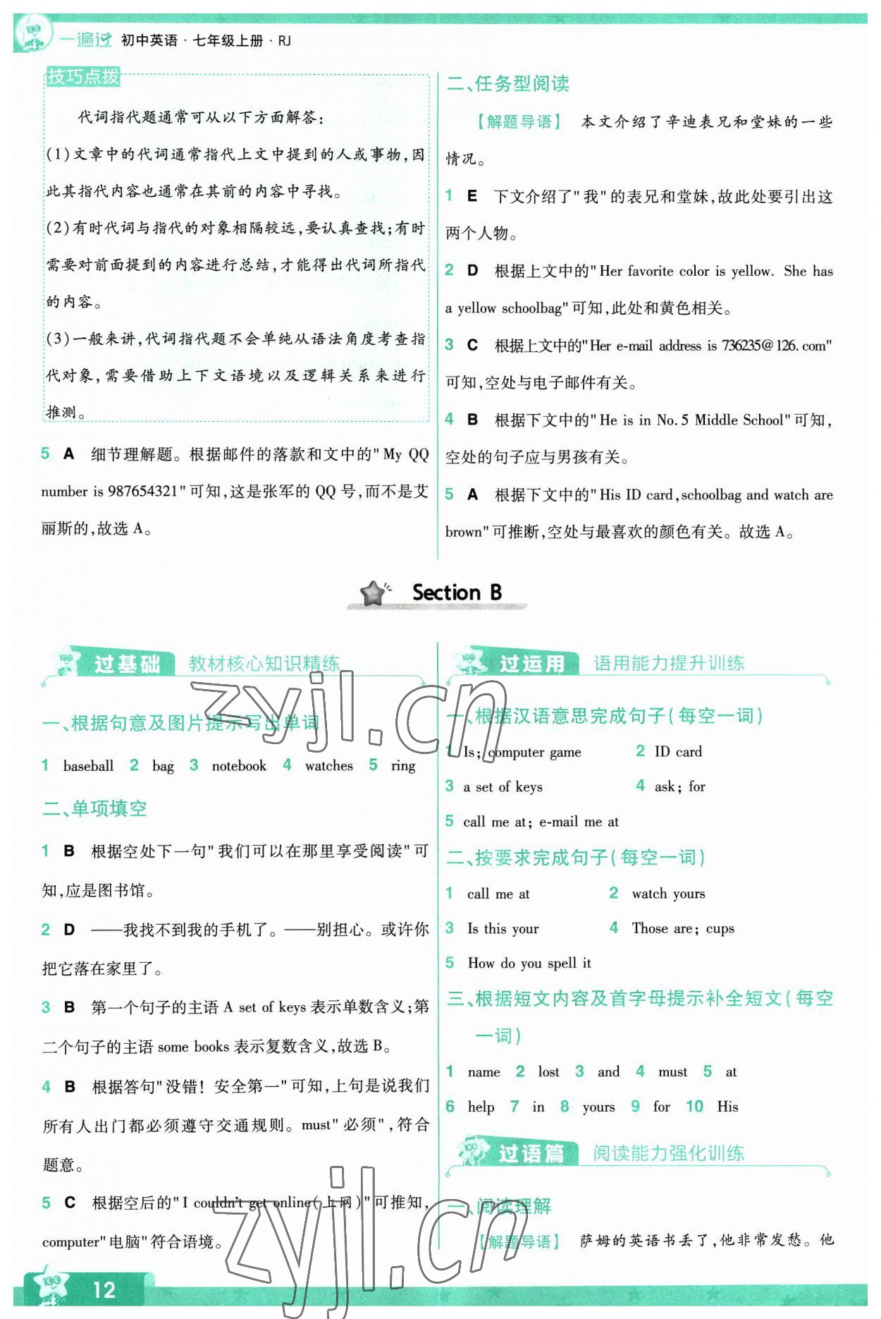 注:目前有些书本章节名称可能整理的还不是很完善,但都是按照顺序排列的,请同学们按照顺序仔细查找。练习册 2023年一遍过七年级初中英语上册人教版 答案主要是用来给同学们做完题方便对答案用的,请勿直接抄袭。