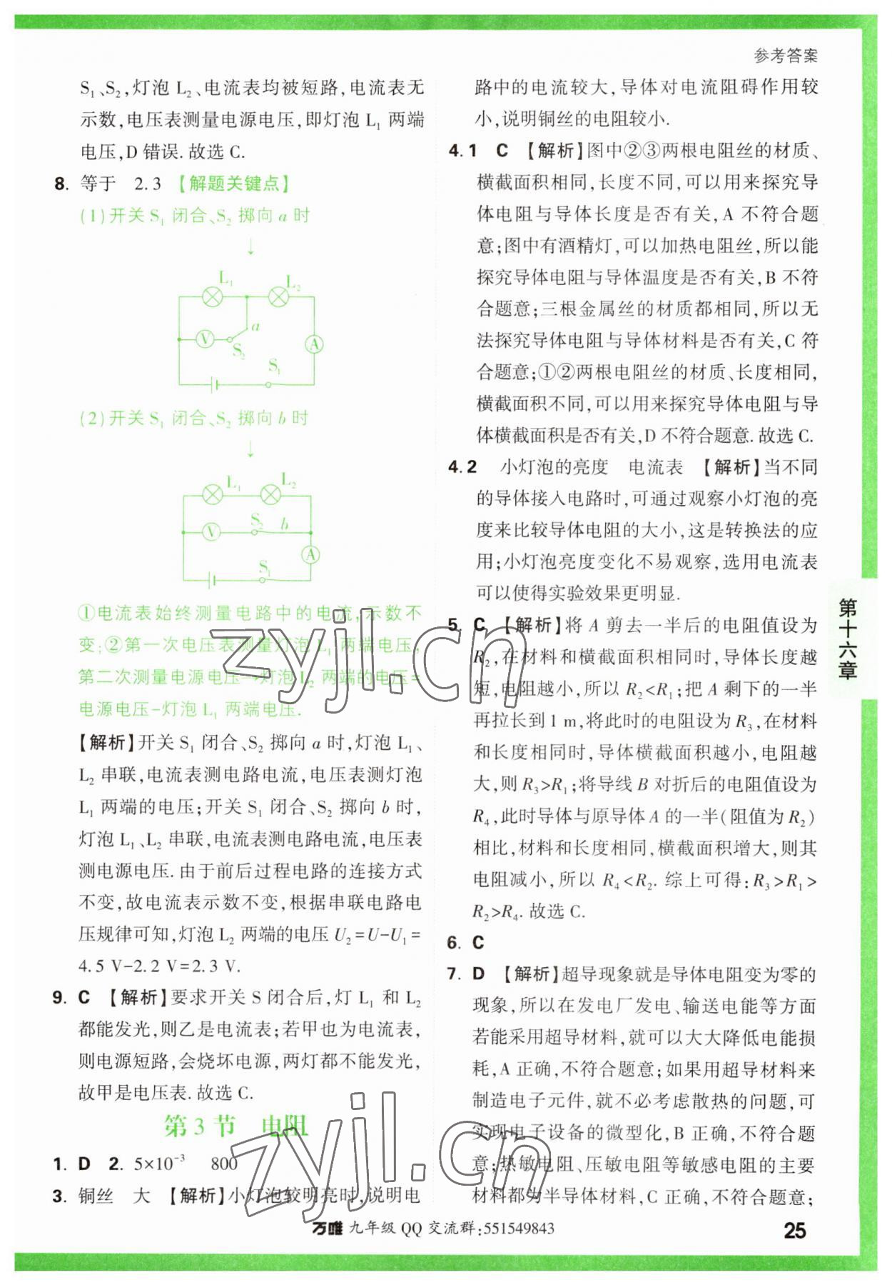 注:目前有些书本章节名称可能整理的还不是很完善,但都是按照顺序排列的,请同学们按照顺序仔细查找。练习册 2023年万唯中考基础题九年级物理全一册人教版 答案主要是用来给同学们做完题方便对答案用的,请勿直接抄袭。