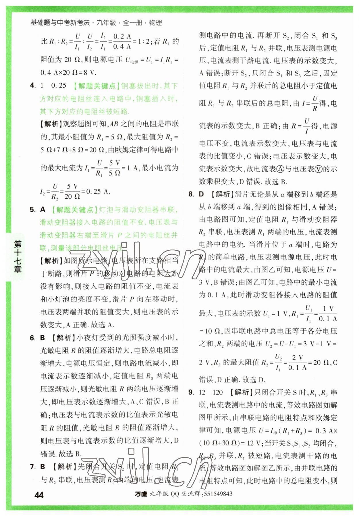 注:目前有些书本章节名称可能整理的还不是很完善,但都是按照顺序排列的,请同学们按照顺序仔细查找。练习册 2023年万唯中考基础题九年级物理全一册人教版 答案主要是用来给同学们做完题方便对答案用的,请勿直接抄袭。