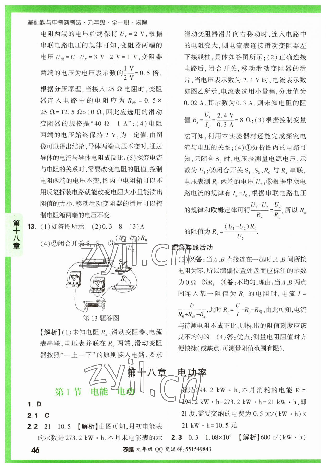 注:目前有些书本章节名称可能整理的还不是很完善,但都是按照顺序排列的,请同学们按照顺序仔细查找。练习册 2023年万唯中考基础题九年级物理全一册人教版 答案主要是用来给同学们做完题方便对答案用的,请勿直接抄袭。