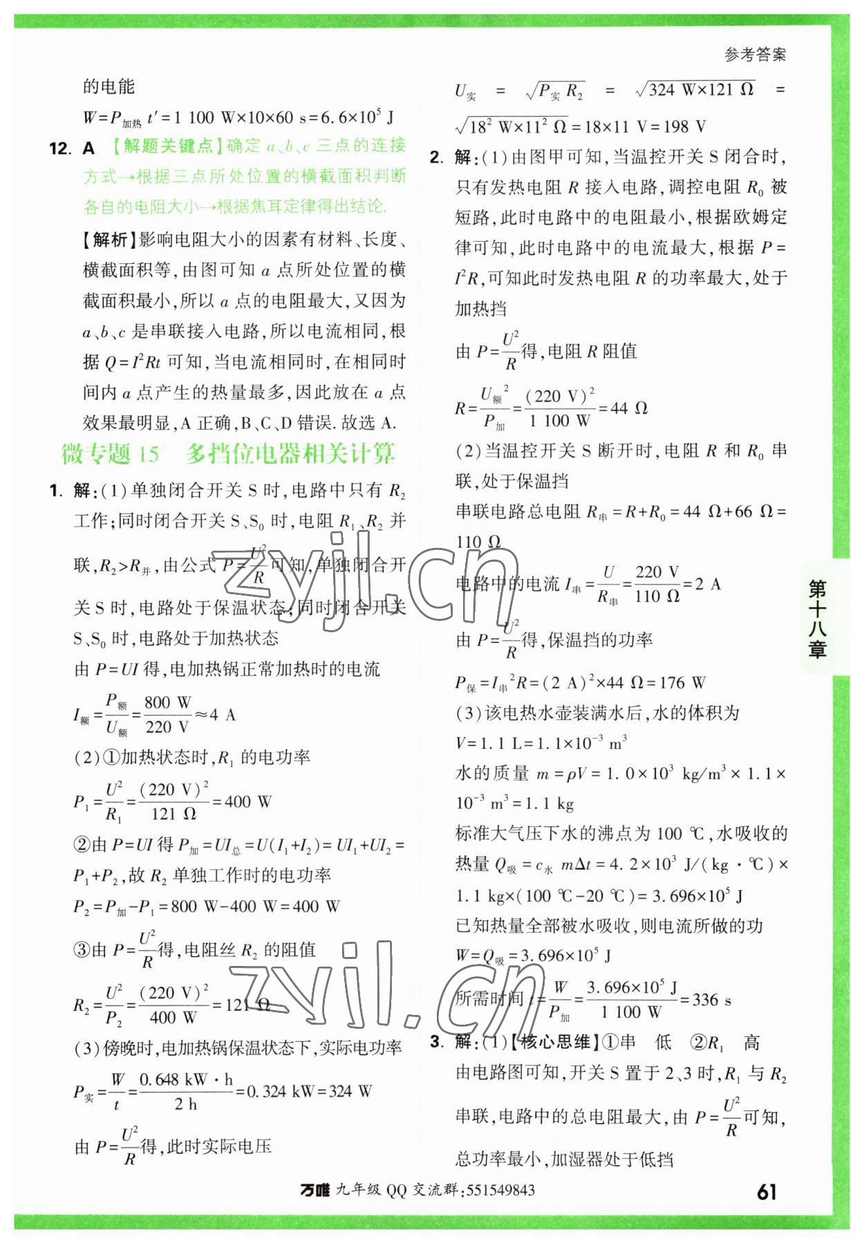注:目前有些书本章节名称可能整理的还不是很完善,但都是按照顺序排列的,请同学们按照顺序仔细查找。练习册 2023年万唯中考基础题九年级物理全一册人教版 答案主要是用来给同学们做完题方便对答案用的,请勿直接抄袭。