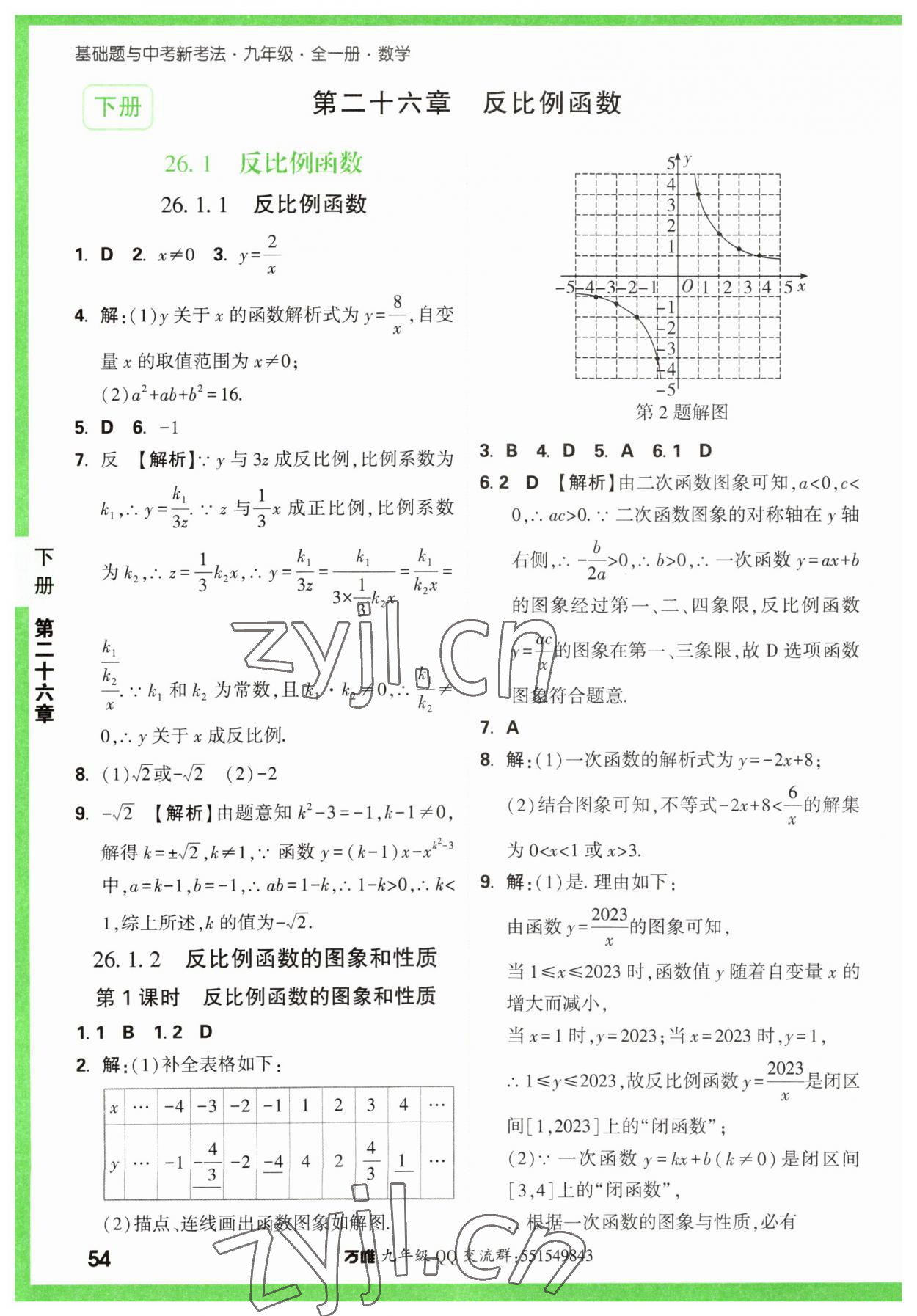 注:目前有些书本章节名称可能整理的还不是很完善,但都是按照顺序排列的,请同学们按照顺序仔细查找。练习册 2023年万唯中考基础题九年级数学全一册人教版 答案主要是用来给同学们做完题方便对答案用的,请勿直接抄袭。