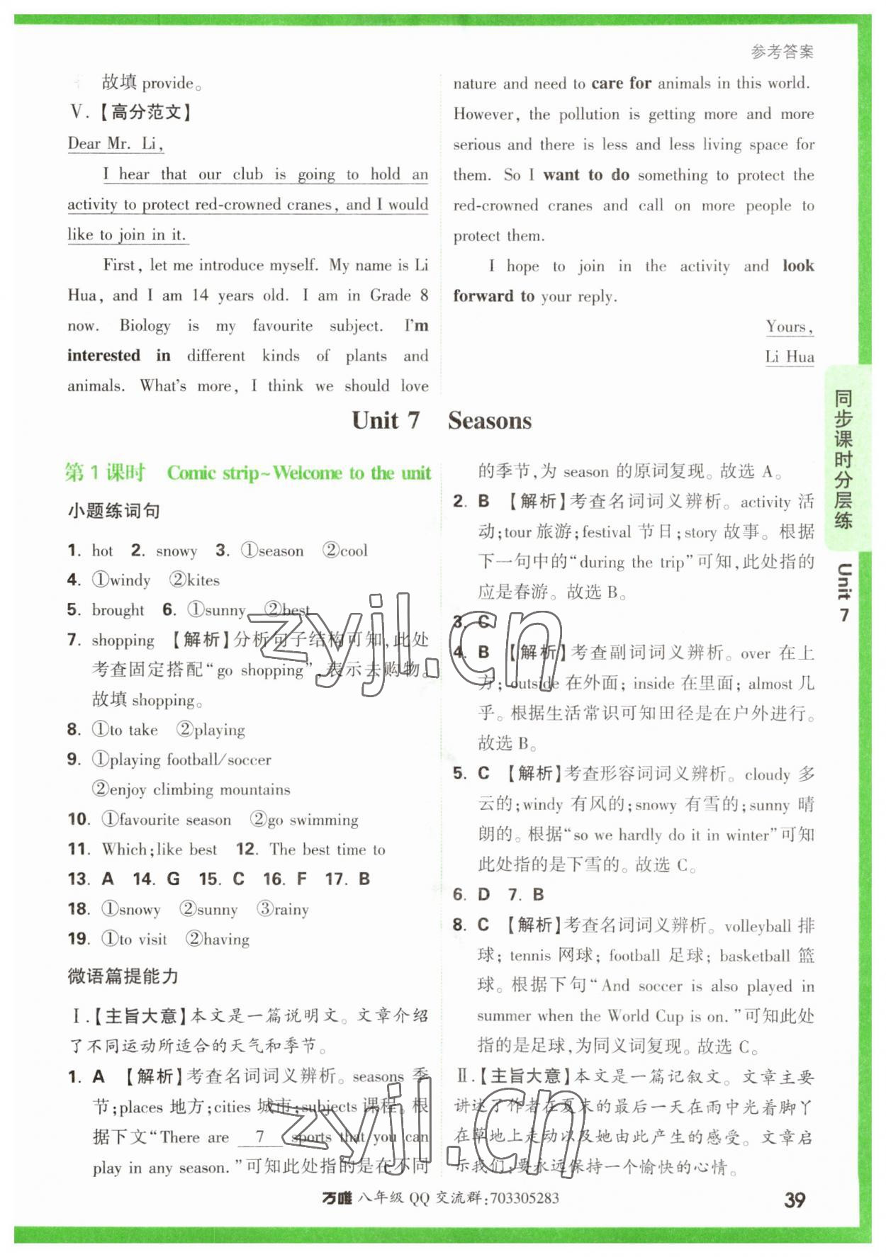 注:目前有些书本章节名称可能整理的还不是很完善,但都是按照顺序排列的,请同学们按照顺序仔细查找。练习册 2023年万唯原创基础题八年级英语上册译林版 答案主要是用来给同学们做完题方便对答案用的,请勿直接抄袭。