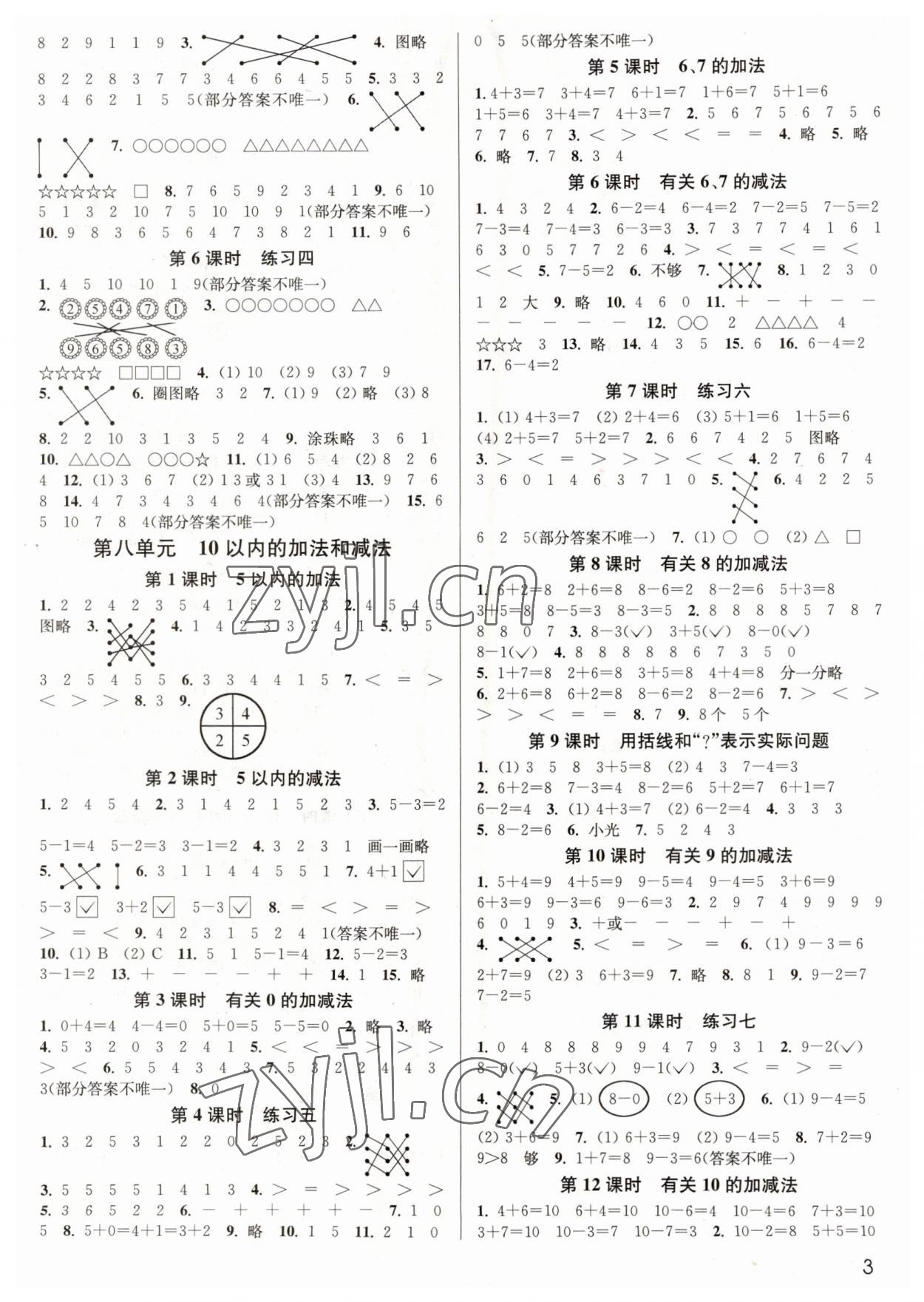 注:目前有些书本章节名称可能整理的还不是很完善,但都是按照顺序排列的,请同学们按照顺序仔细查找。练习册 2023年金3练一年级数学上册苏教版 答案主要是用来给同学们做完题方便对答案用的,请勿直接抄袭。