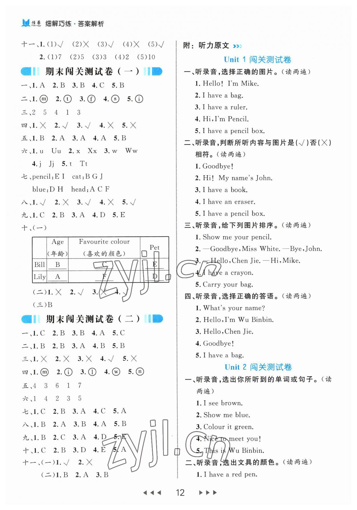 注:目前有些书本章节名称可能整理的还不是很完善,但都是按照顺序排列的,请同学们按照顺序仔细查找。练习册 2023年细解巧练三年级英语上册人教版 答案主要是用来给同学们做完题方便对答案用的,请勿直接抄袭。