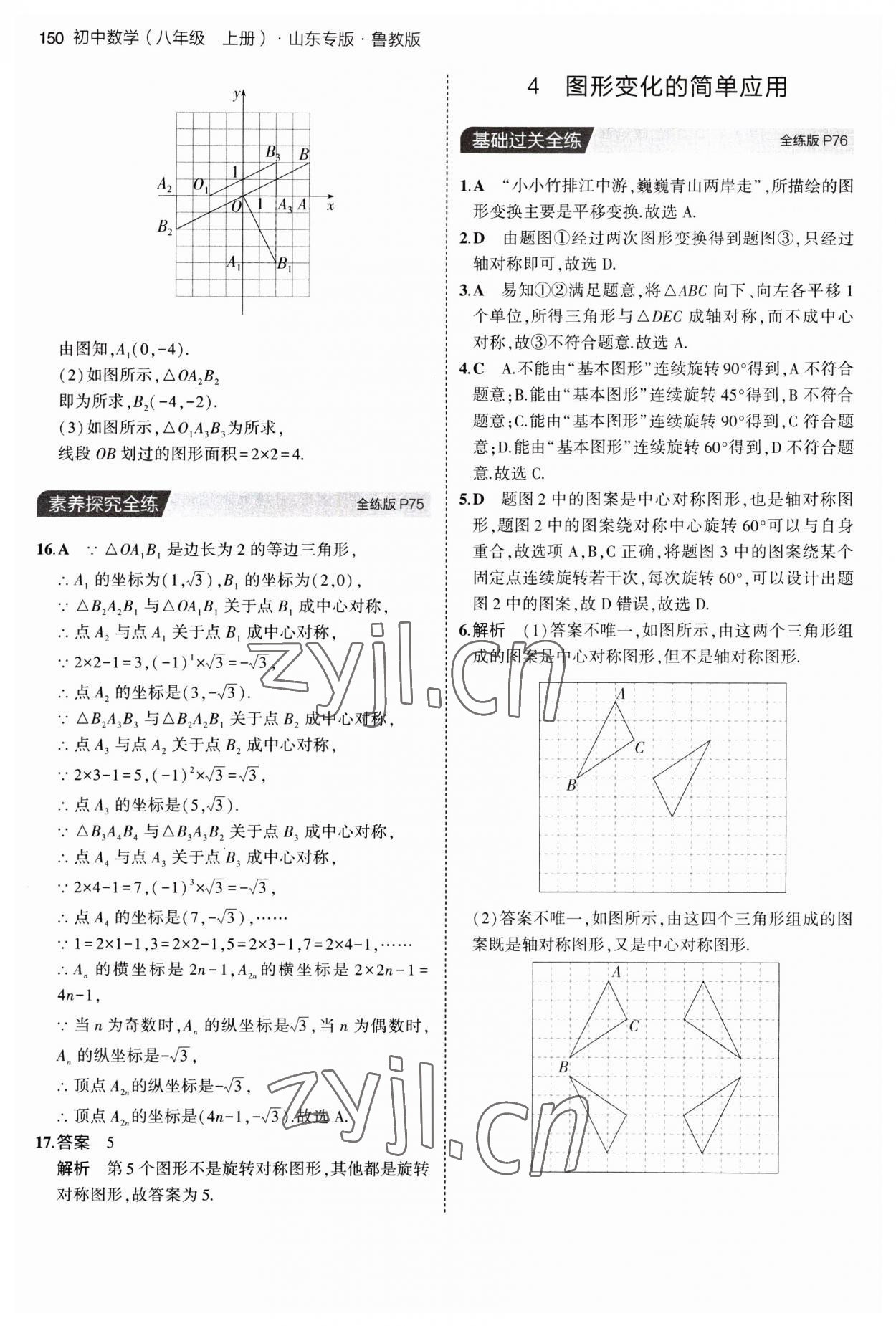 2023年5年中考3年模拟八年级数学上册鲁教版54制