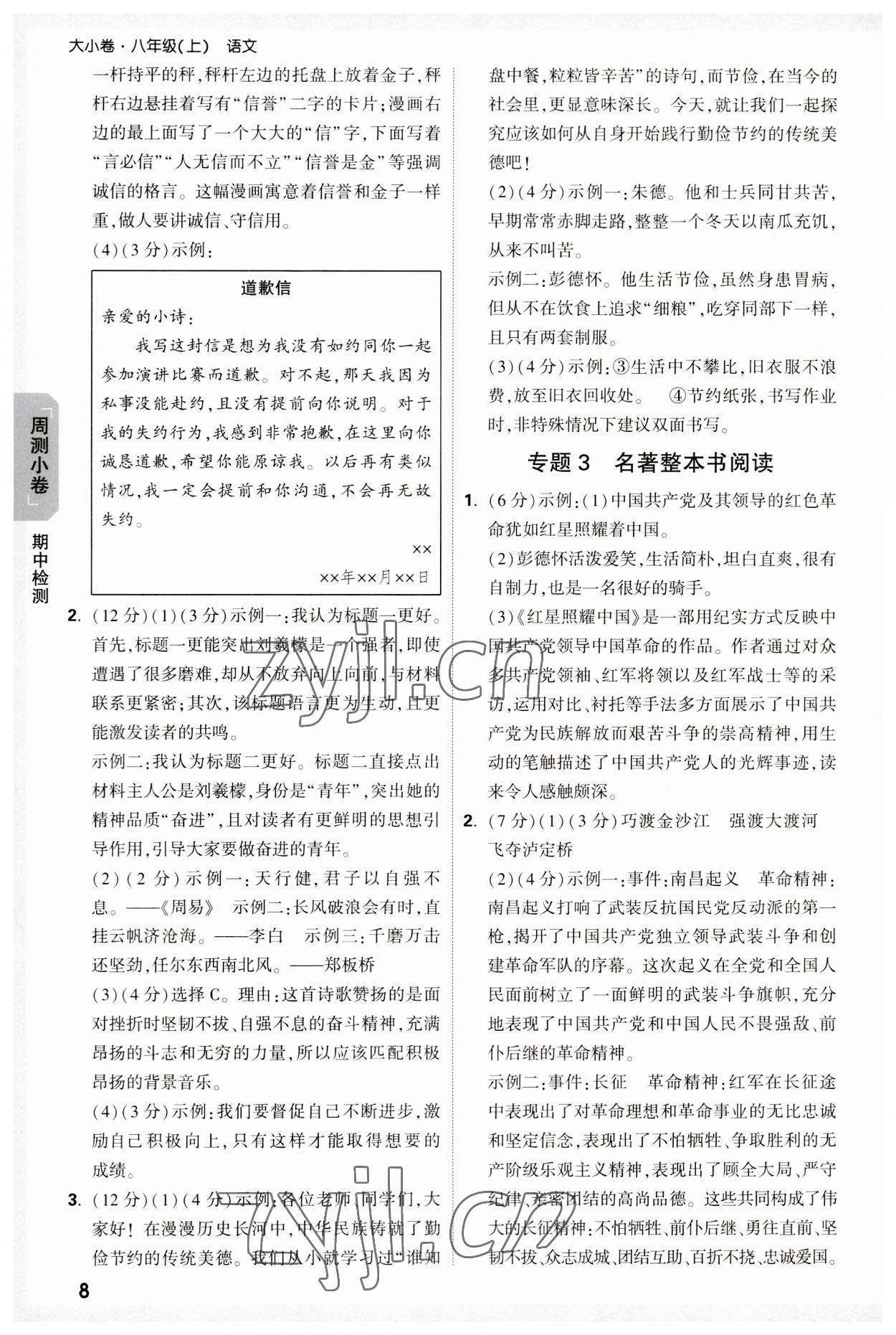 注:目前有些书本章节名称可能整理的还不是很完善,但都是按照顺序排列的,请同学们按照顺序仔细查找。练习册 2023年万唯大小卷八年级语文上册人教版 答案主要是用来给同学们做完题方便对答案用的,请勿直接抄袭。