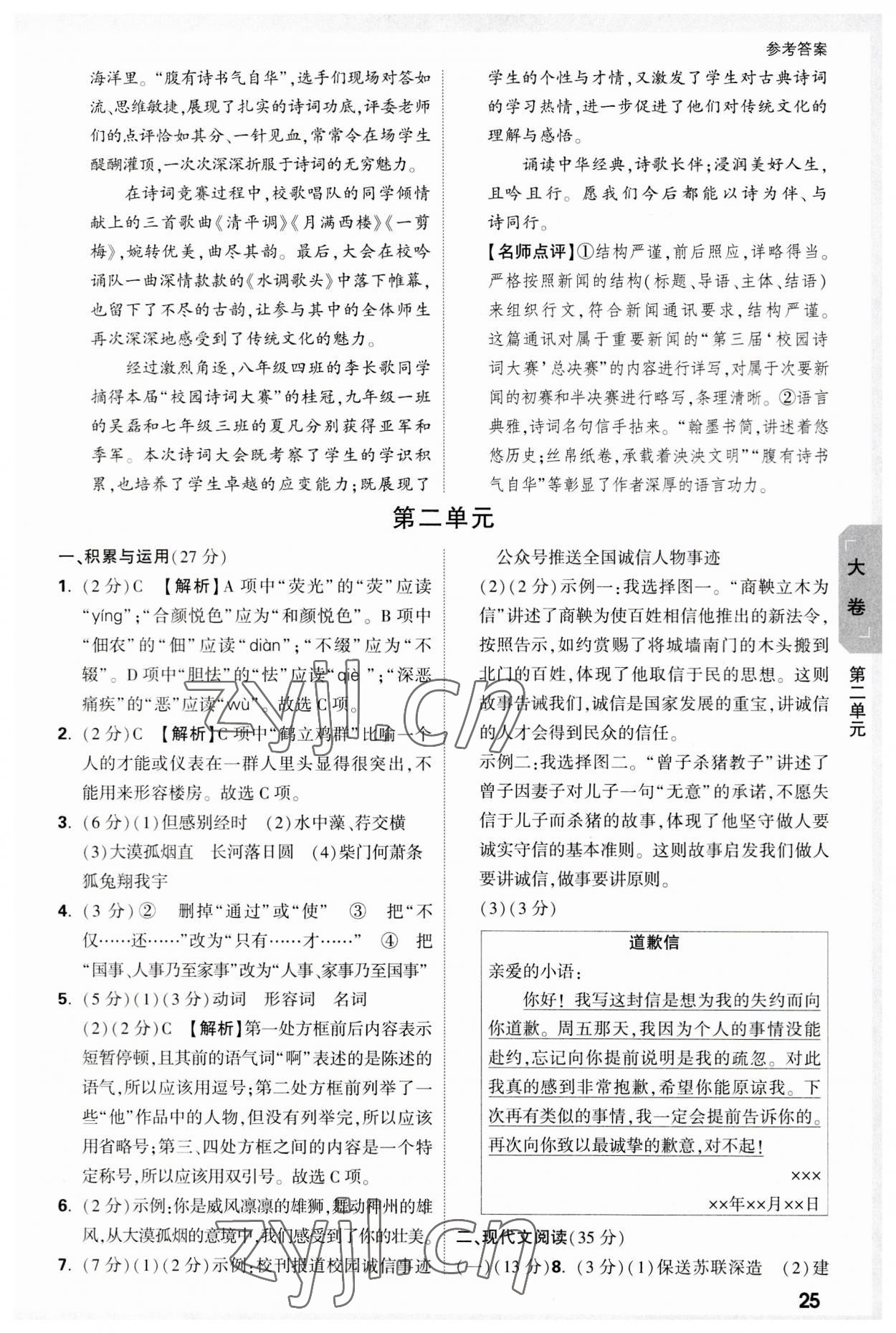 注:目前有些书本章节名称可能整理的还不是很完善,但都是按照顺序排列的,请同学们按照顺序仔细查找。练习册 2023年万唯大小卷八年级语文上册人教版 答案主要是用来给同学们做完题方便对答案用的,请勿直接抄袭。