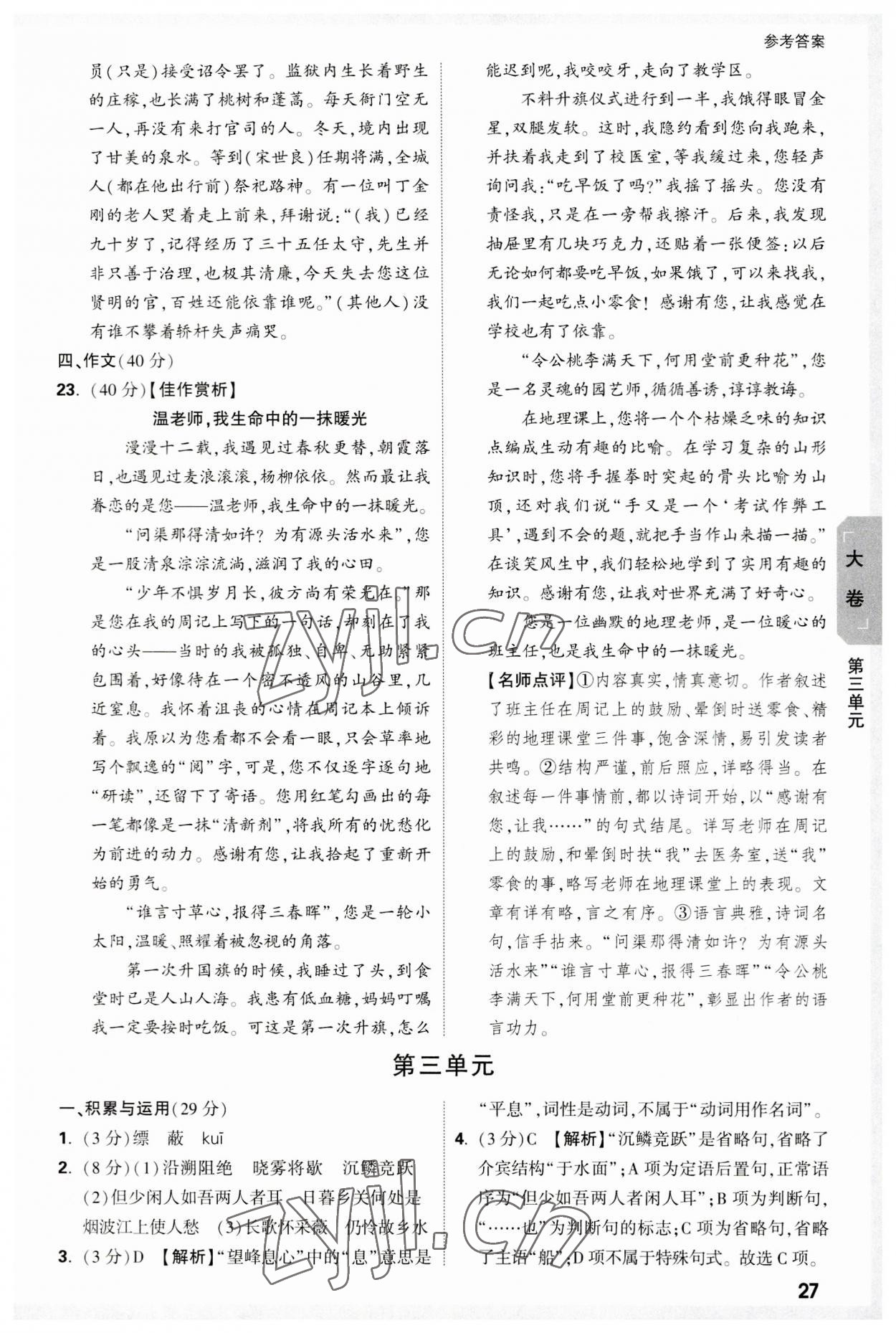 注:目前有些书本章节名称可能整理的还不是很完善,但都是按照顺序排列的,请同学们按照顺序仔细查找。练习册 2023年万唯大小卷八年级语文上册人教版 答案主要是用来给同学们做完题方便对答案用的,请勿直接抄袭。