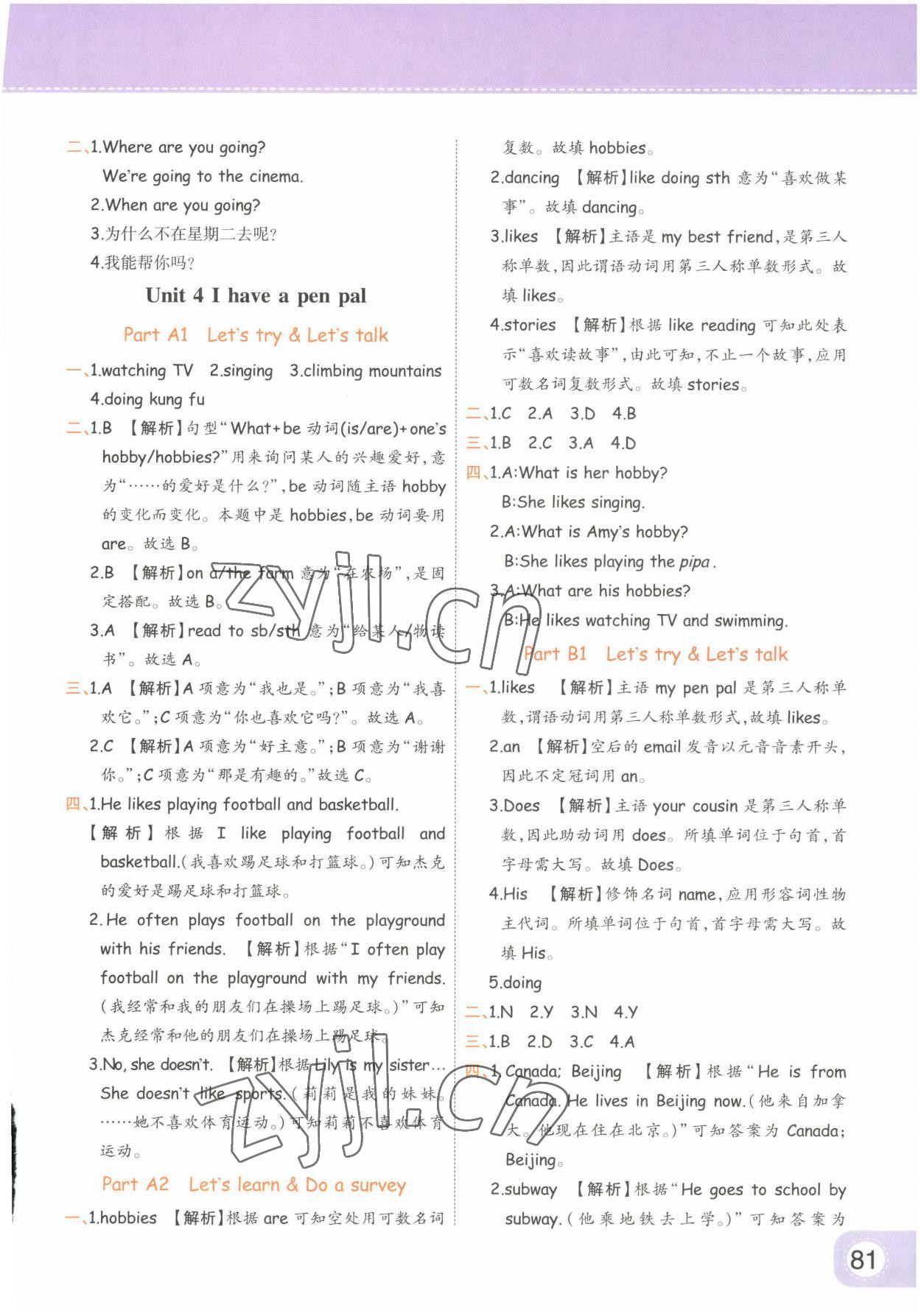 相关练习册答案