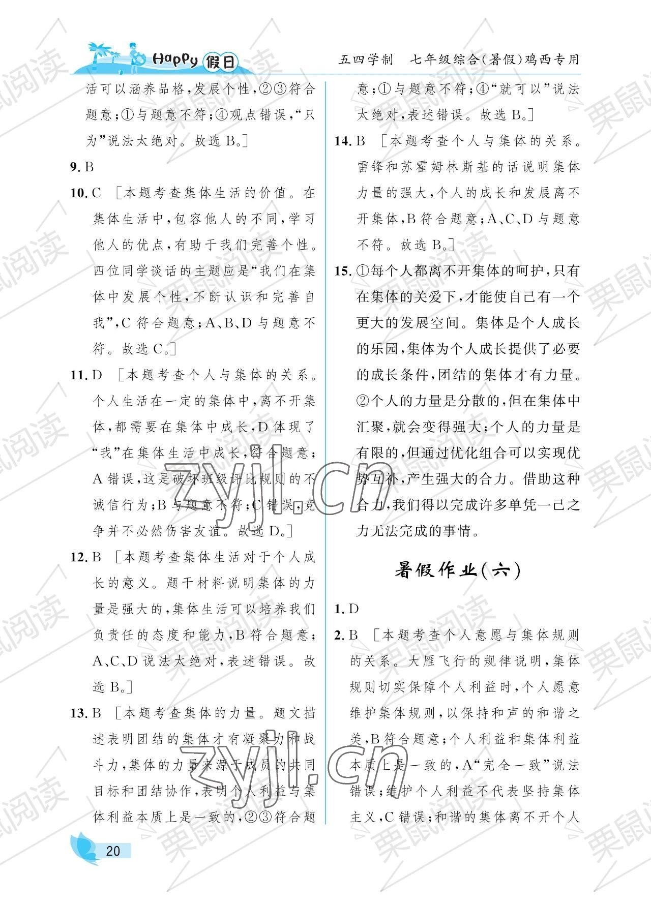 注:目前有些书本章节名称可能整理的还不是很完善,但都是按照顺序排列的,请同学们按照顺序仔细查找。练习册 2023年暑假Happy假日七年级综合54制鸡西专用 答案主要是用来给同学们做完题方便对答案用的,请勿直接抄袭。
