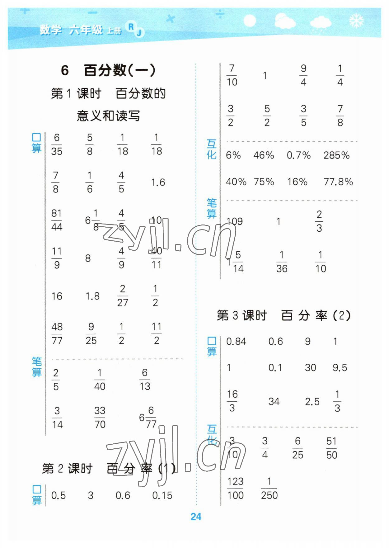 2023年口算大通关六年级数学上册人教版