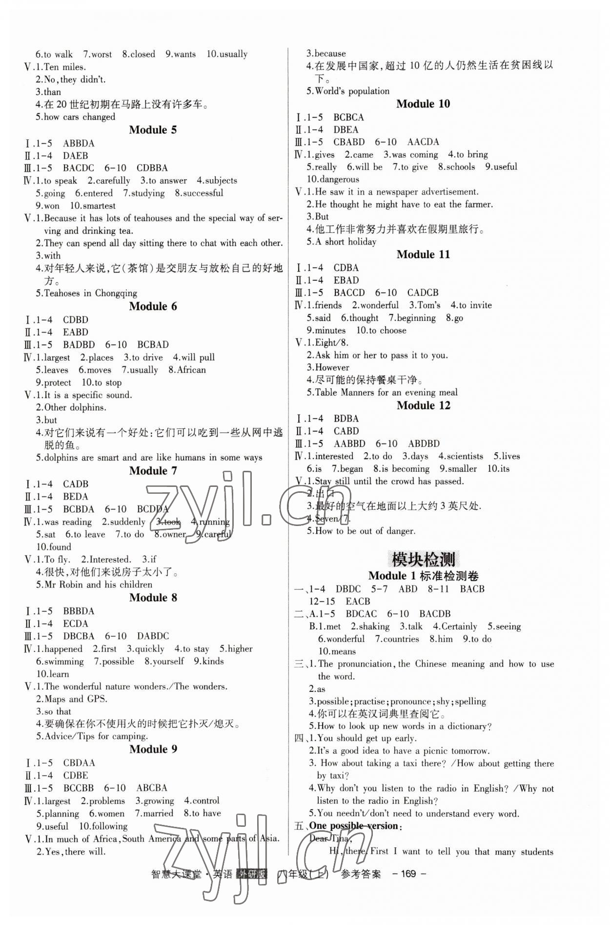 注:目前有些书本章节名称可能整理的还不是很完善,但都是按照顺序排列的,请同学们按照顺序仔细查找。练习册 2023年初中新课标名师学案智慧大课堂八年级英语上册外研版 答案主要是用来给同学们做完题方便对答案用的,请勿直接抄袭。