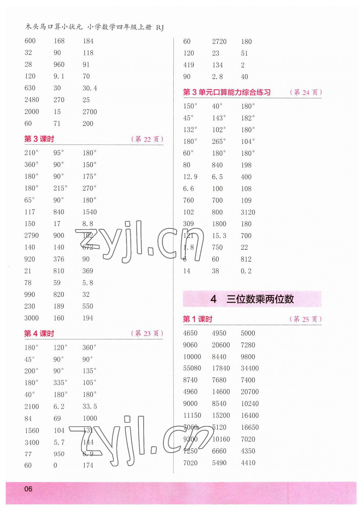 2023年口算小状元口算速算天天练四年级数学上册人教版