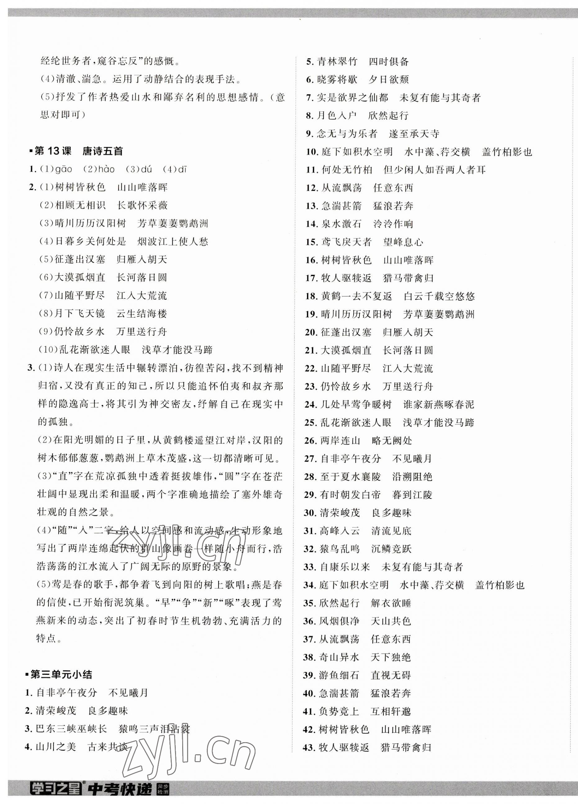 注:目前有些书本章节名称可能整理的还不是很完善,但都是按照顺序排列的,请同学们按照顺序仔细查找。练习册 2023年中考快递同步检测八年级语文上册人教版 答案主要是用来给同学们做完题方便对答案用的,请勿直接抄袭。