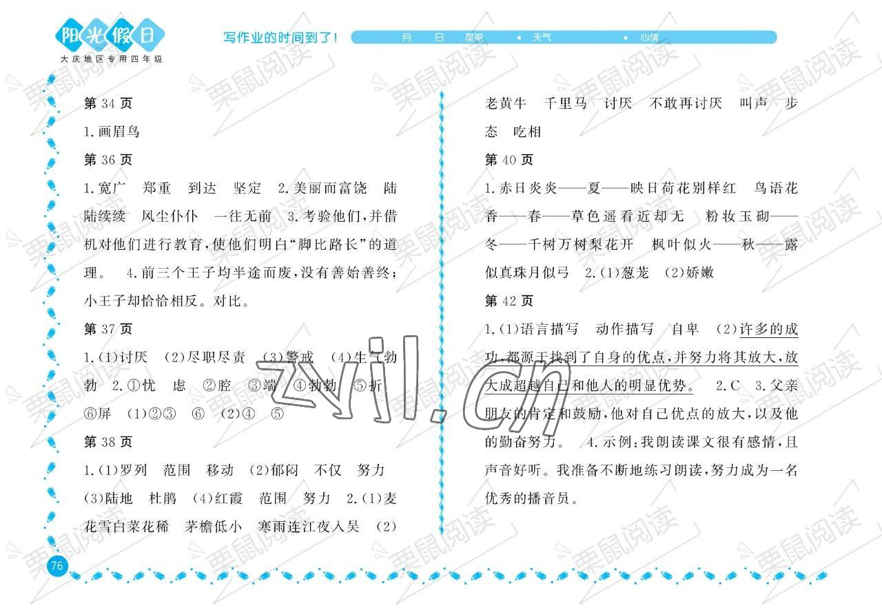 2023年暑假Happy假日四年级语文大庆专版