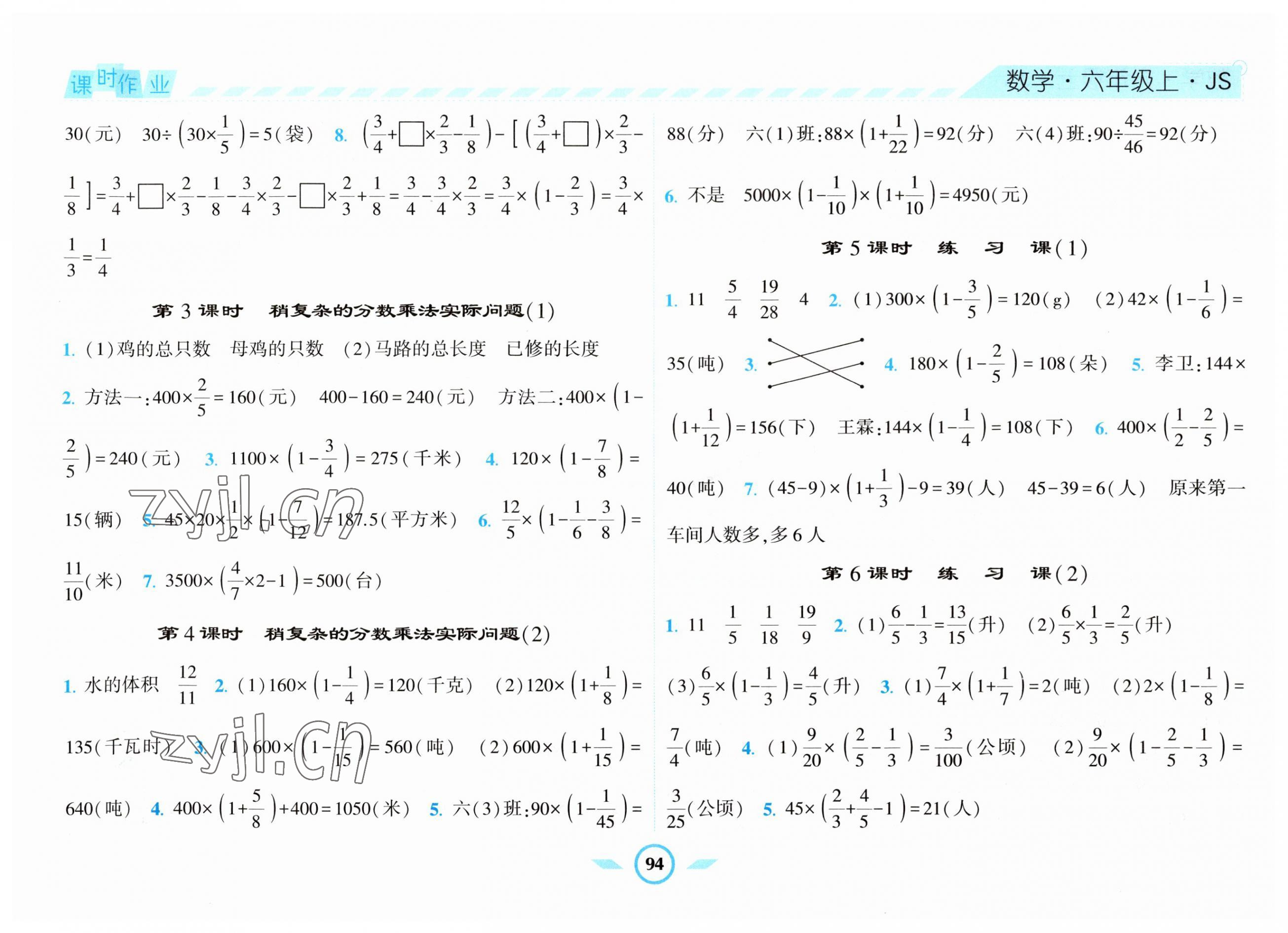 注:目前有些书本章节名称可能整理的还不是很完善,但都是按照顺序排列的,请同学们按照顺序仔细查找。练习册 2023年经纶学典课时作业六年级数学上册苏教版 答案主要是用来给同学们做完题方便对答案用的,请勿直接抄袭。