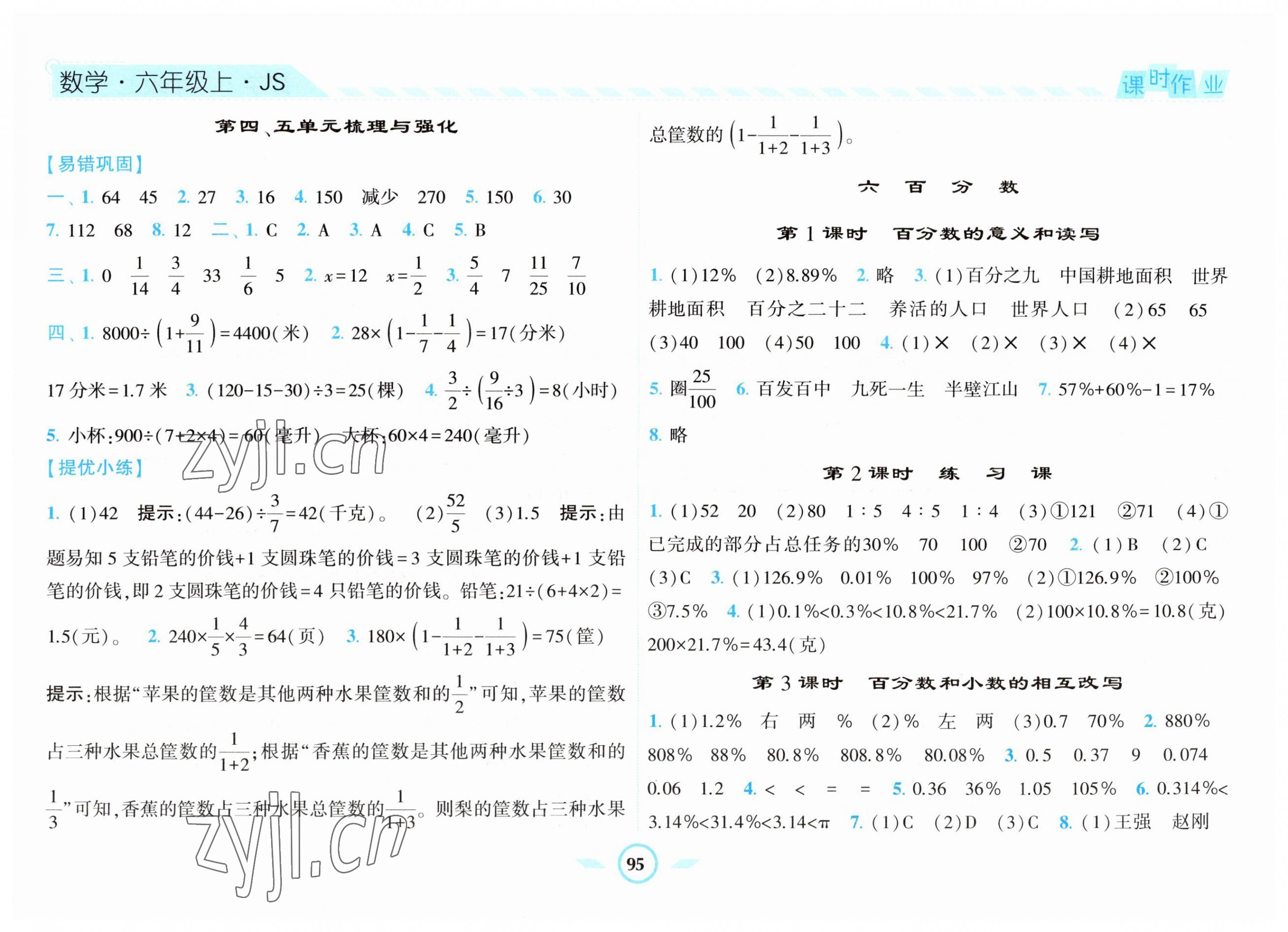 注:目前有些书本章节名称可能整理的还不是很完善,但都是按照顺序排列的,请同学们按照顺序仔细查找。练习册 2023年经纶学典课时作业六年级数学上册苏教版 答案主要是用来给同学们做完题方便对答案用的,请勿直接抄袭。