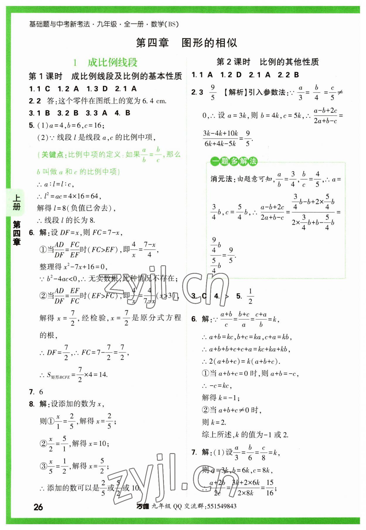 注:目前有些书本章节名称可能整理的还不是很完善,但都是按照顺序排列的,请同学们按照顺序仔细查找。练习册 2023年万唯中考基础题九年级数学全一册北师大版 答案主要是用来给同学们做完题方便对答案用的,请勿直接抄袭。