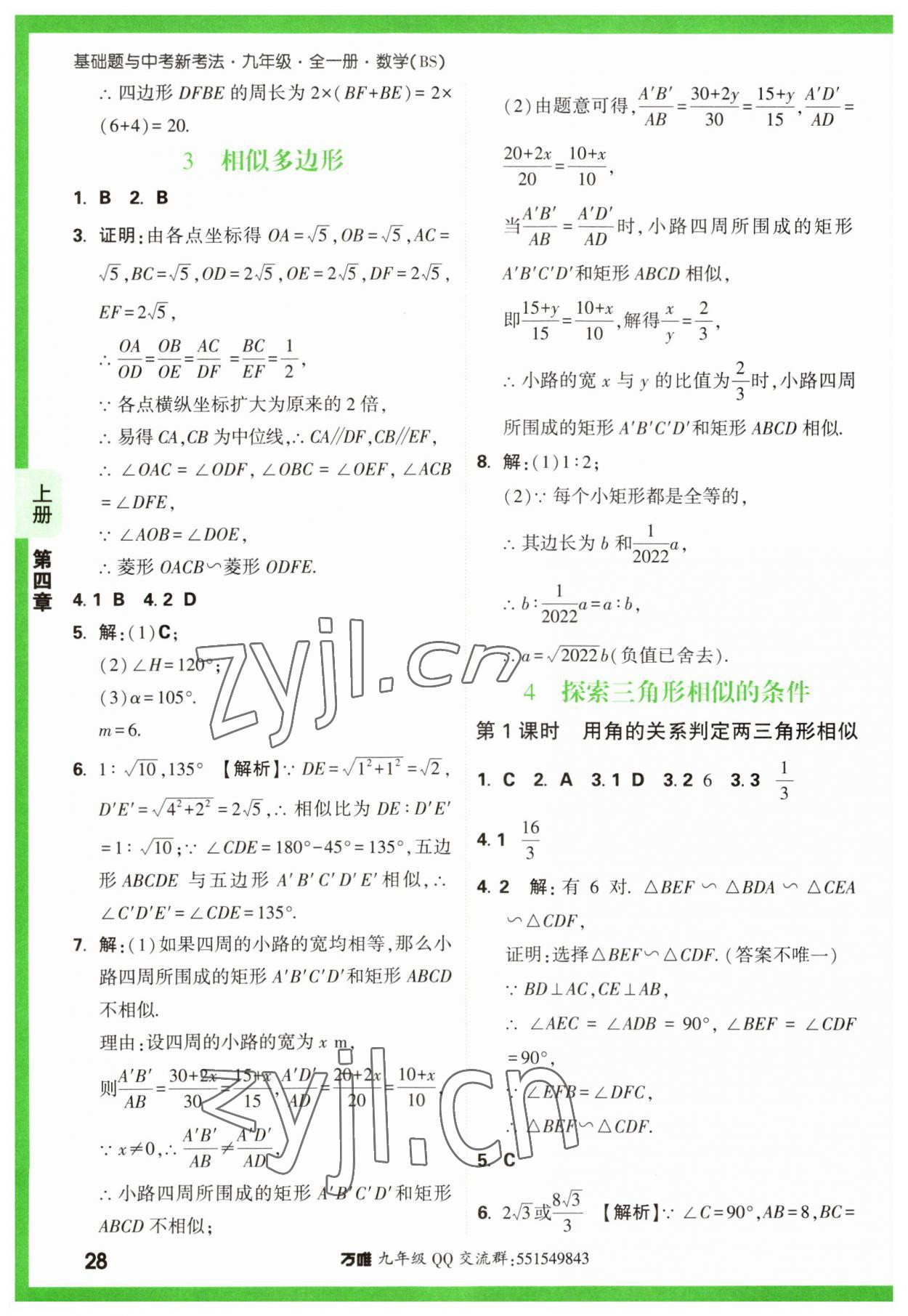 注:目前有些书本章节名称可能整理的还不是很完善,但都是按照顺序排列的,请同学们按照顺序仔细查找。练习册 2023年万唯中考基础题九年级数学全一册北师大版 答案主要是用来给同学们做完题方便对答案用的,请勿直接抄袭。