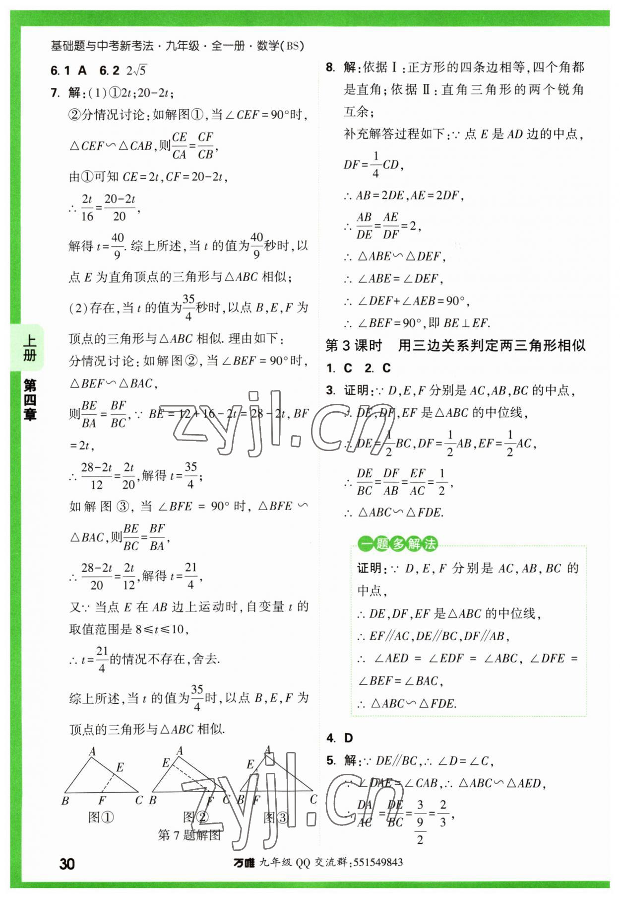 注:目前有些书本章节名称可能整理的还不是很完善,但都是按照顺序排列的,请同学们按照顺序仔细查找。练习册 2023年万唯中考基础题九年级数学全一册北师大版 答案主要是用来给同学们做完题方便对答案用的,请勿直接抄袭。