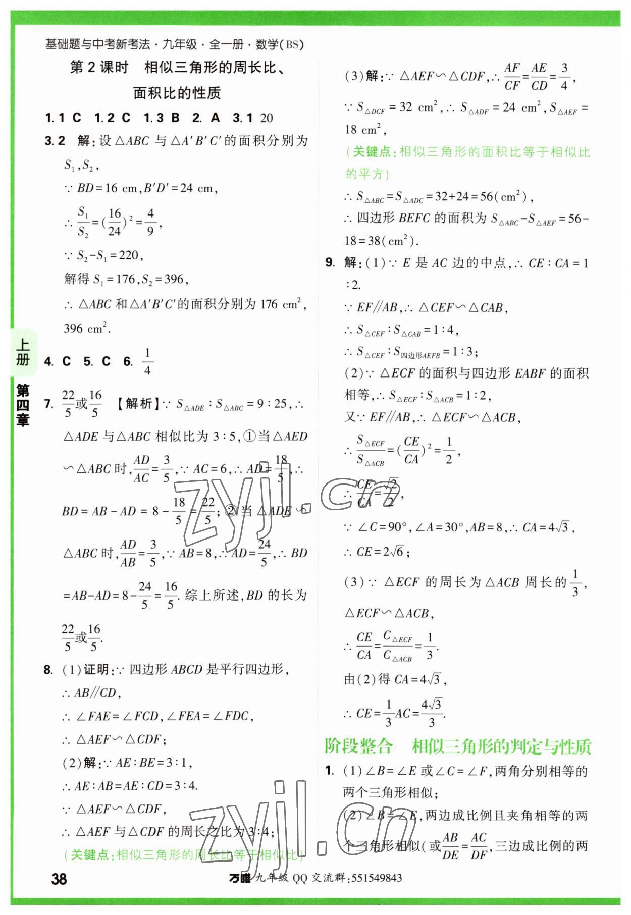注:目前有些书本章节名称可能整理的还不是很完善,但都是按照顺序排列的,请同学们按照顺序仔细查找。练习册 2023年万唯中考基础题九年级数学全一册北师大版 答案主要是用来给同学们做完题方便对答案用的,请勿直接抄袭。