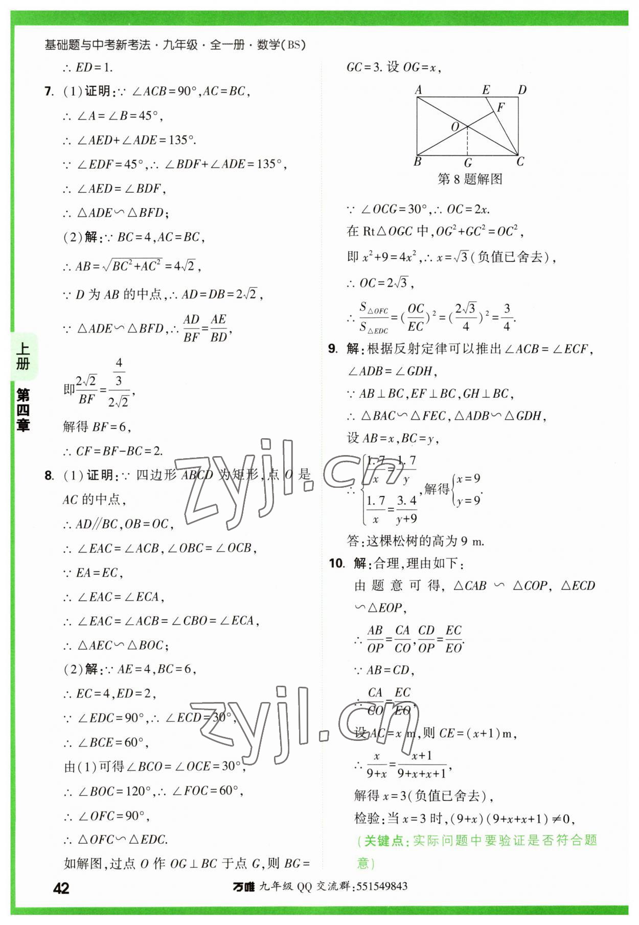 注:目前有些书本章节名称可能整理的还不是很完善,但都是按照顺序排列的,请同学们按照顺序仔细查找。练习册 2023年万唯中考基础题九年级数学全一册北师大版 答案主要是用来给同学们做完题方便对答案用的,请勿直接抄袭。